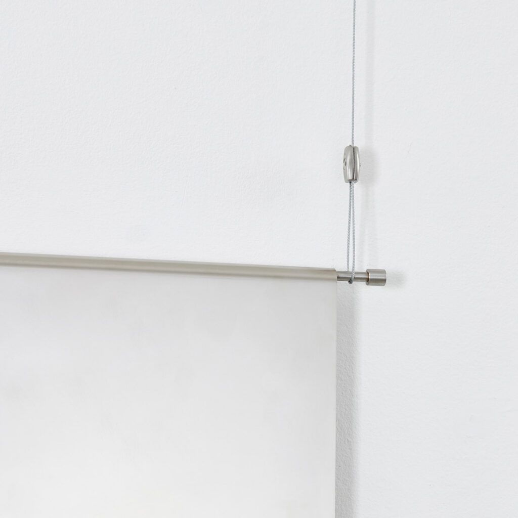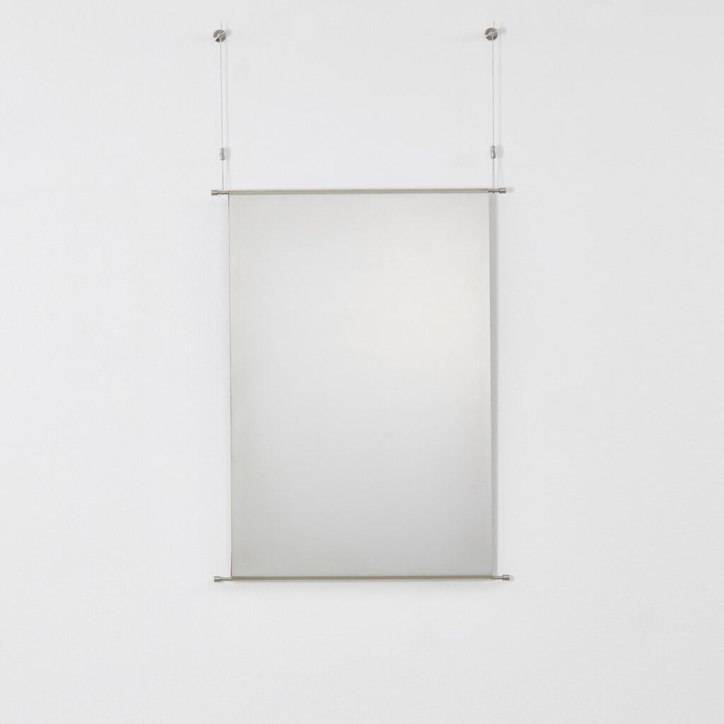 The mirror is available in portrait and landscape hanging modes and can facilitate suspension from wall or ceiling. Four sizes are available, with custom sizes produced upon request. A two metre cable is supplied as standard, with other lengths available. Professional installation is recommended due to the weight of the piece.