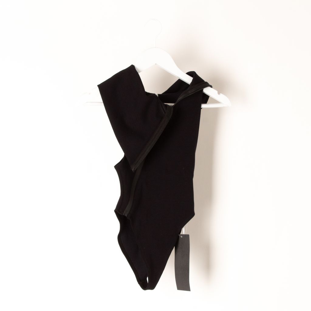 Brand new with tags. Unique one piece. Features a 52% polyamide material blend, an asymmetrical front zip and a color block contrast design motif throughout.