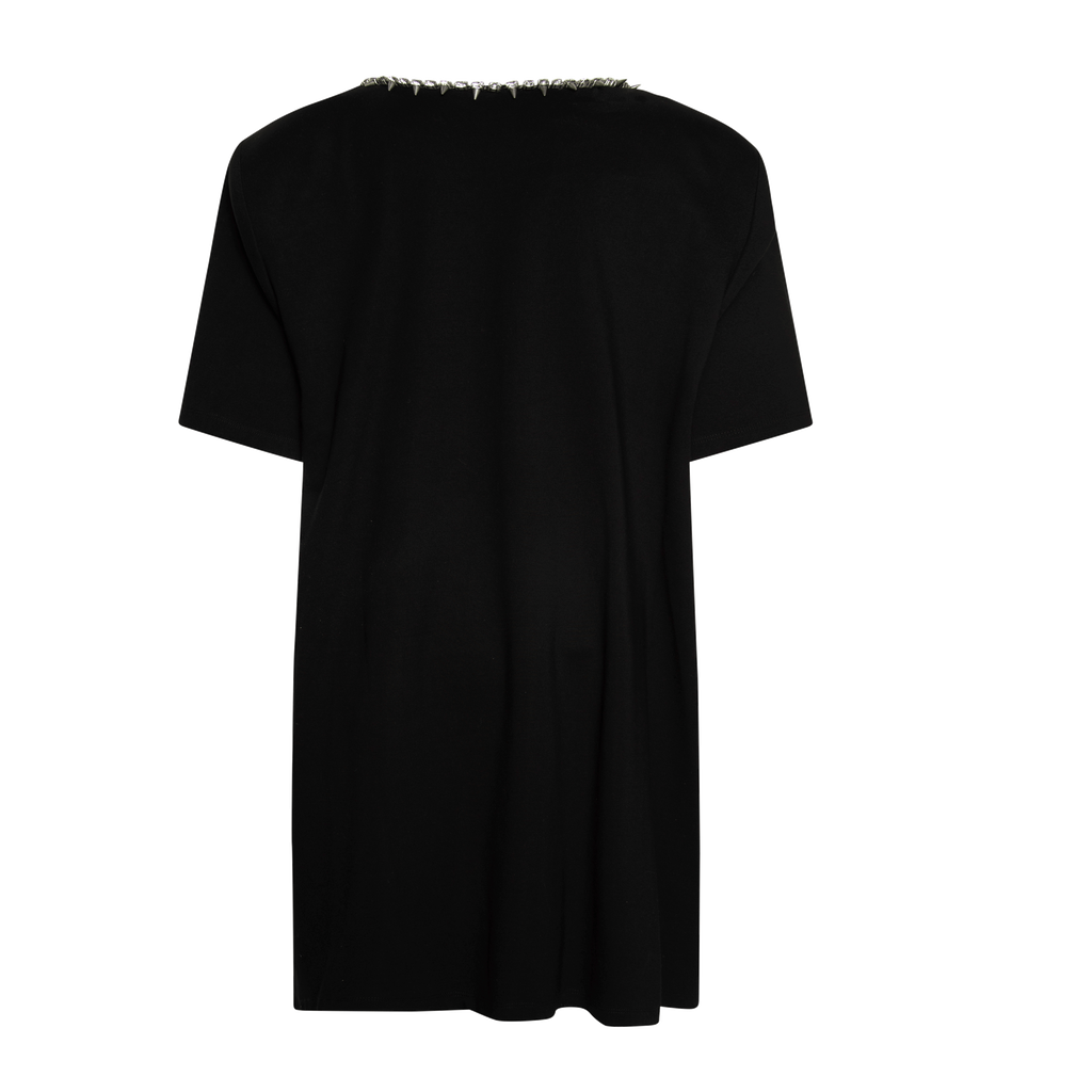 Area Crystal-Trimmed Jersey Mini T-Shirt Dress features slip on fit, crystal bow detail along dropped collar.