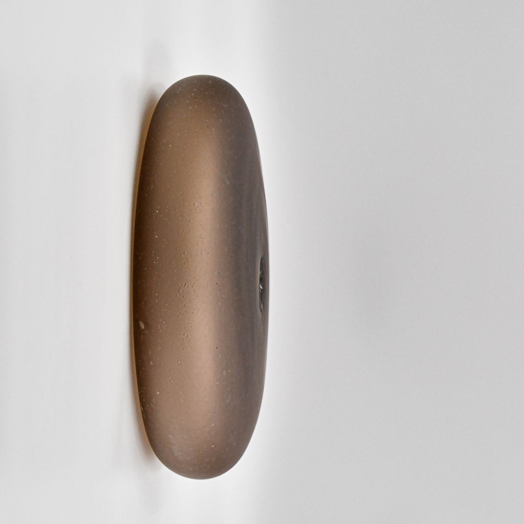 These wall vases, each one-of-a-kind, are mouth-blown and shaped freehand. The unique texture, crafted by the bubbly, frosted glass, gives each piece a sculptural quality. This distinctive effect is achieved by incorporating soda into the glass, creating tiny bubbles that provide a textured appearance. The result reflects exceptional craftsmanship and the designer's commitment to creating timeless, unique glassworks.