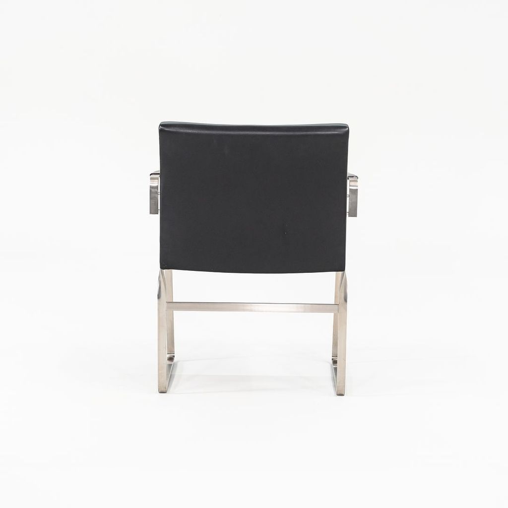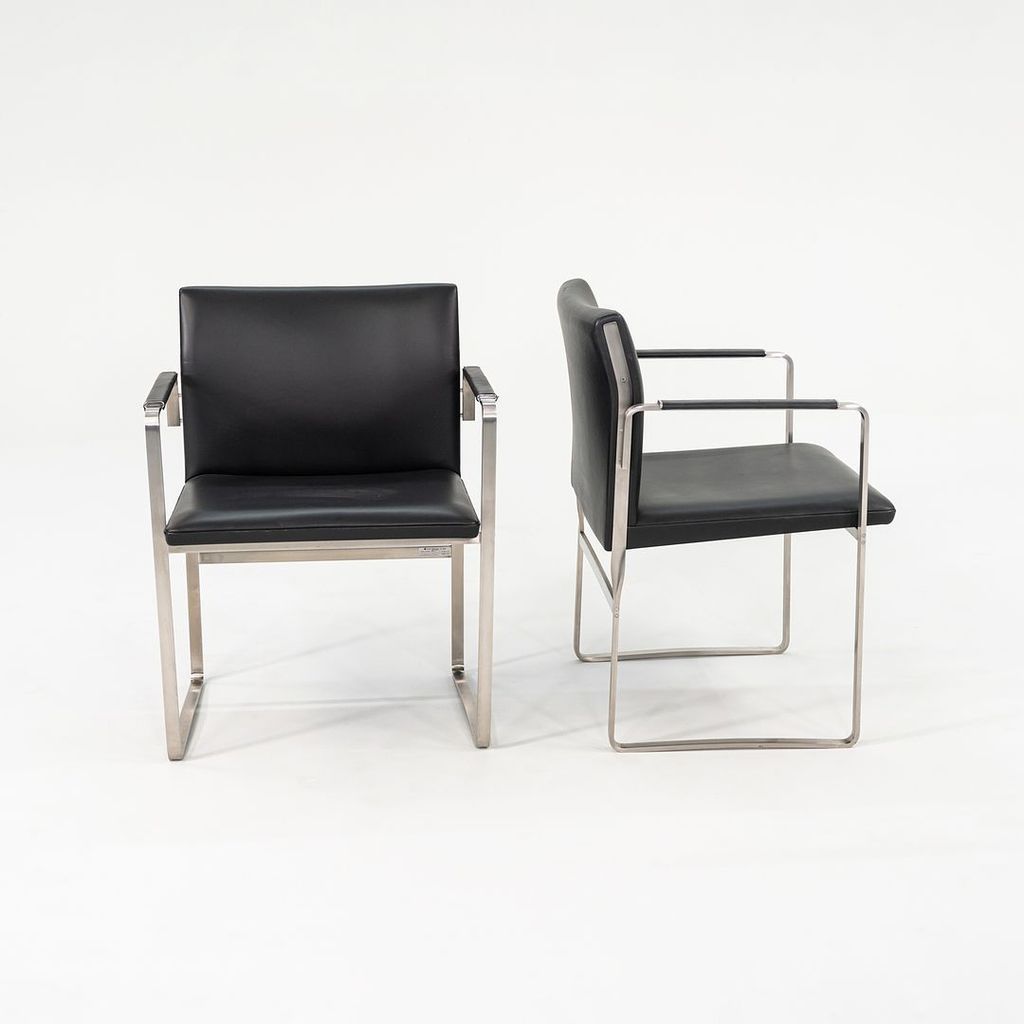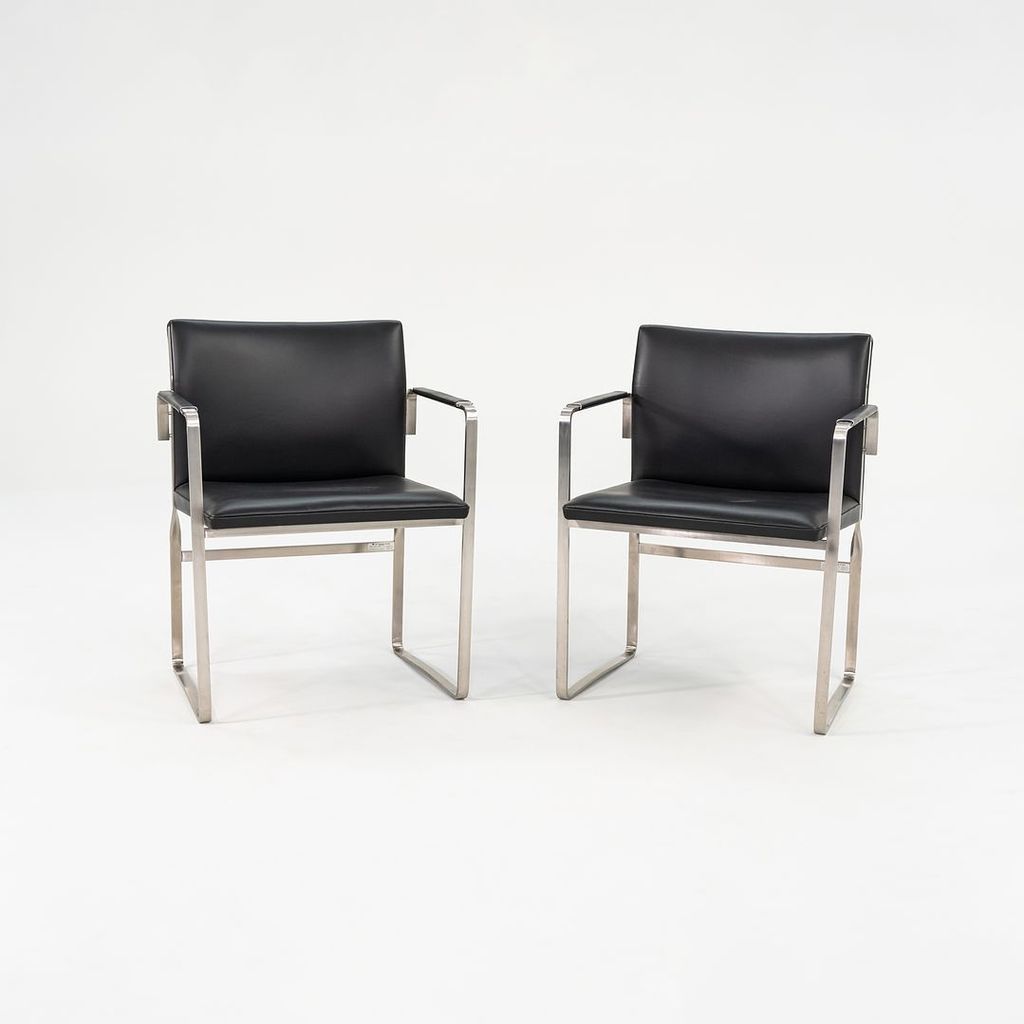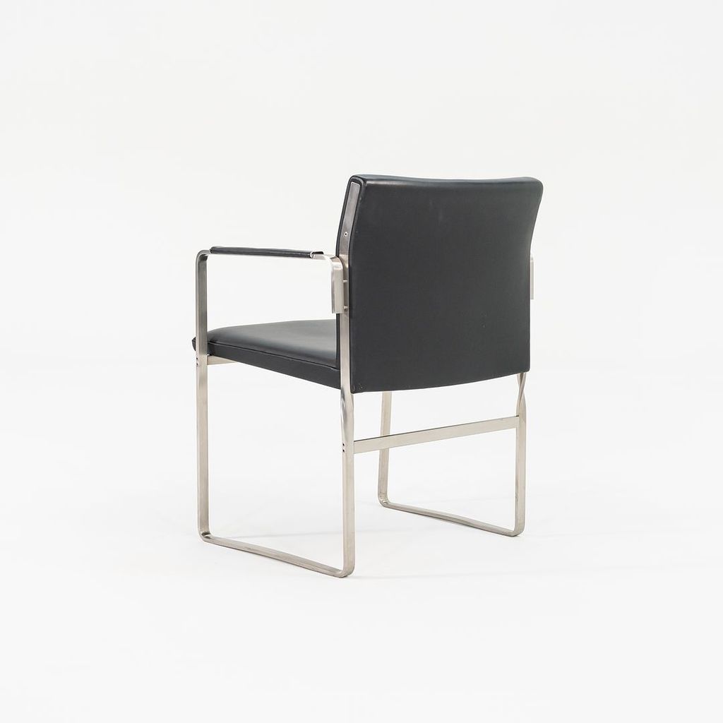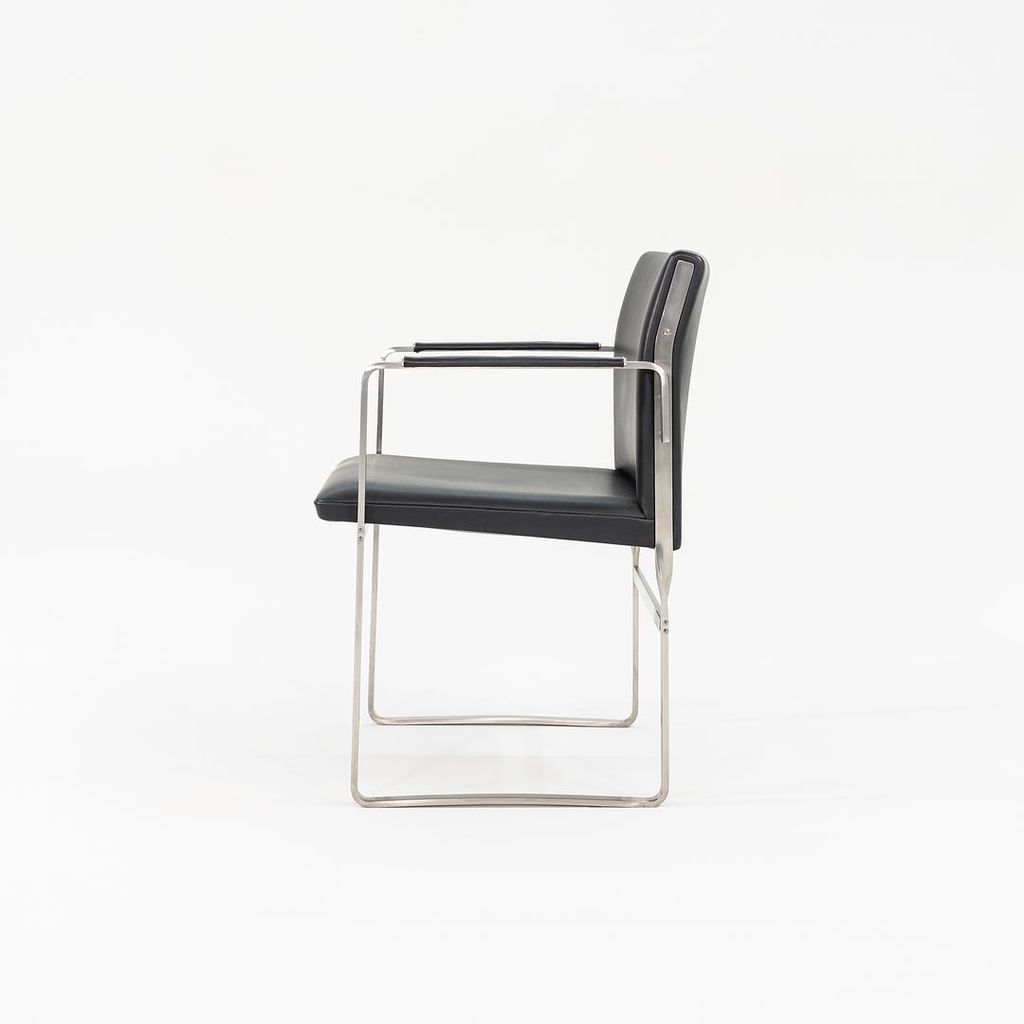 Listed for sale are three CH111 Dining armchairs (sold individually) made with a stainless steel frame and black leather seat. The chair was designed by Hans Wegner and produced by Carl Hansen & Son in Denmark. Each dates to circa 2022 and is guaranteed as authentic. Condition is excellent with some light wear. See photos.