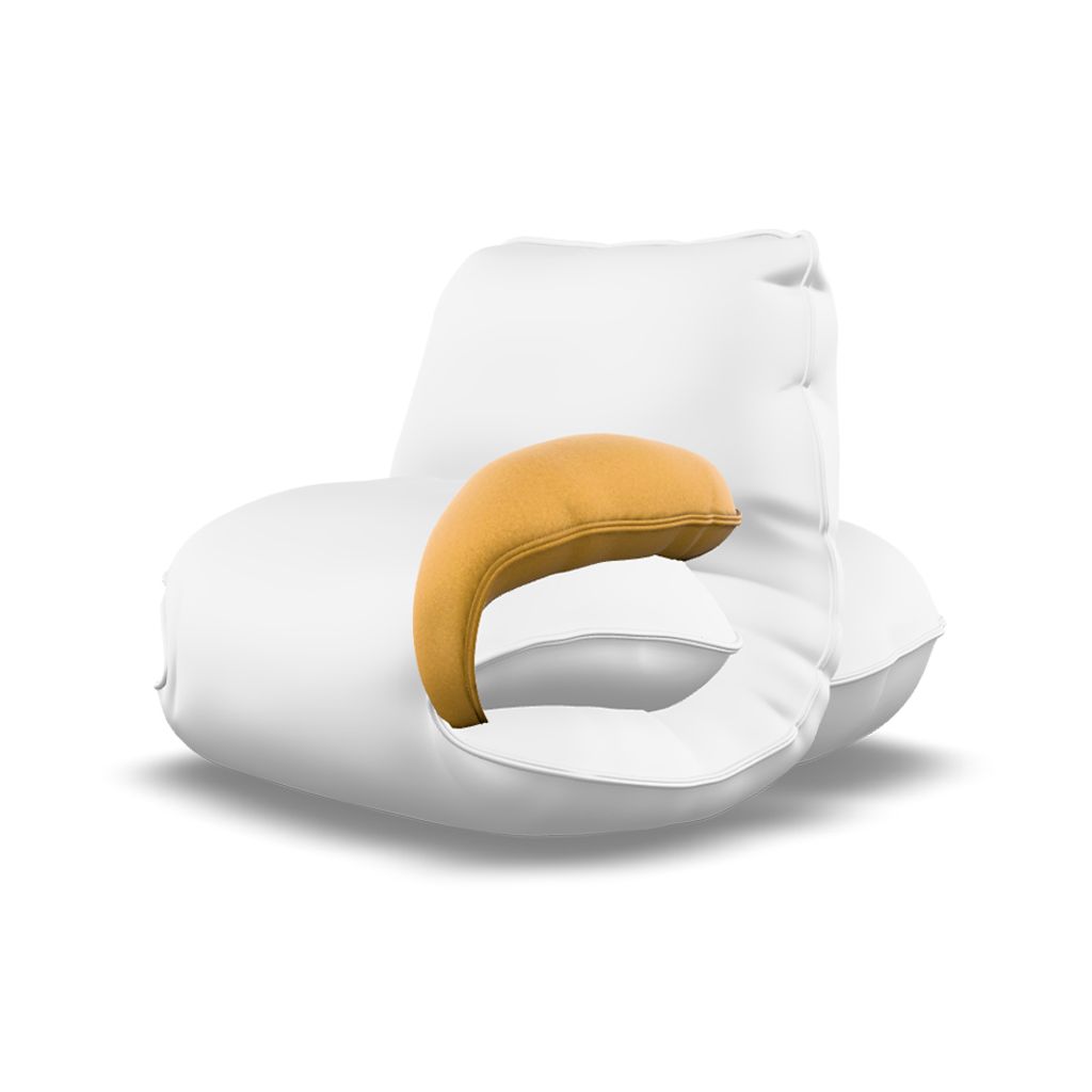 A fully frameless seating design filled with Dutch wool. Built without foam or internal structure. The form is created by folding the cover filled with wool, creating natural support and long lasting comfort.