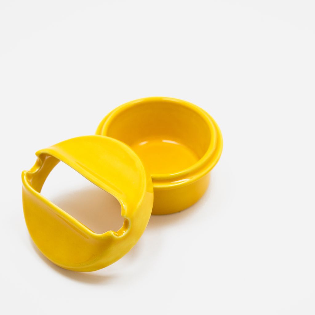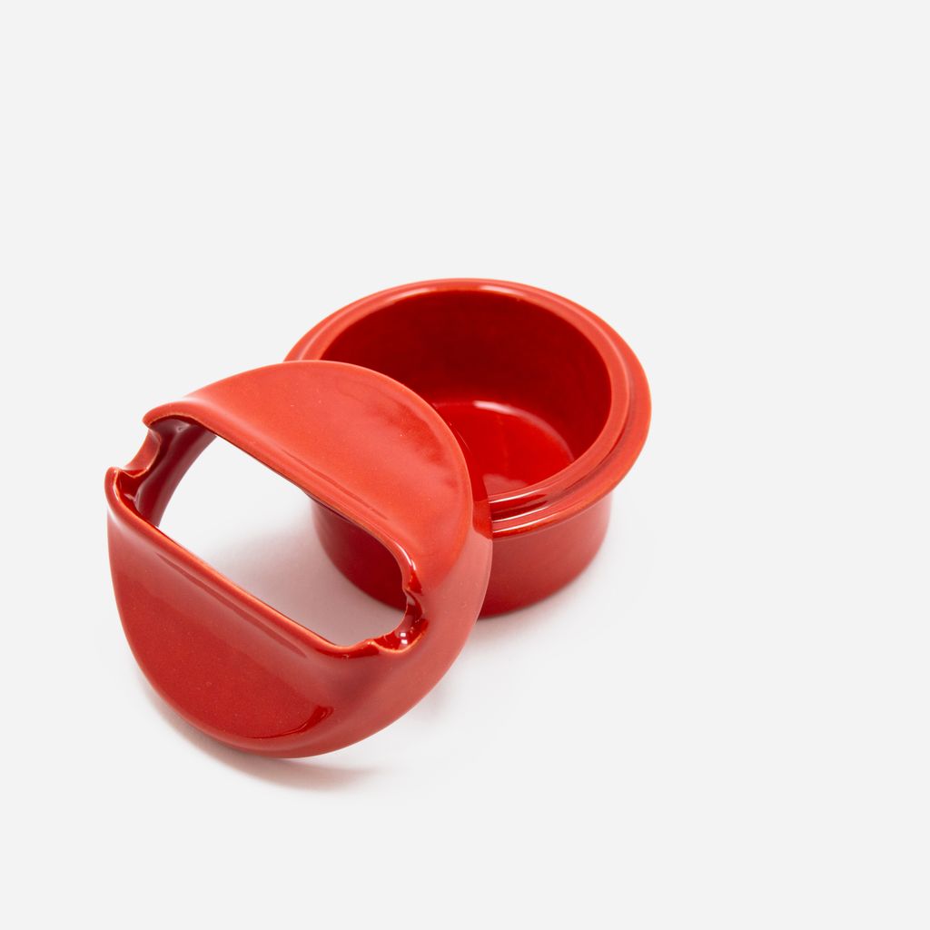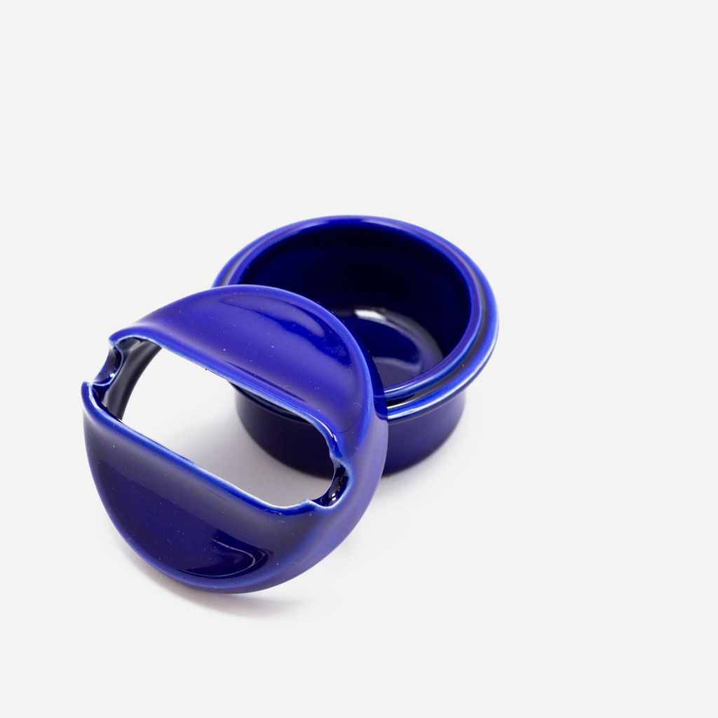 Glazed ceramic ashtray, consisting of two pieces, the container and its cap. It is compatible with U and the Holder.