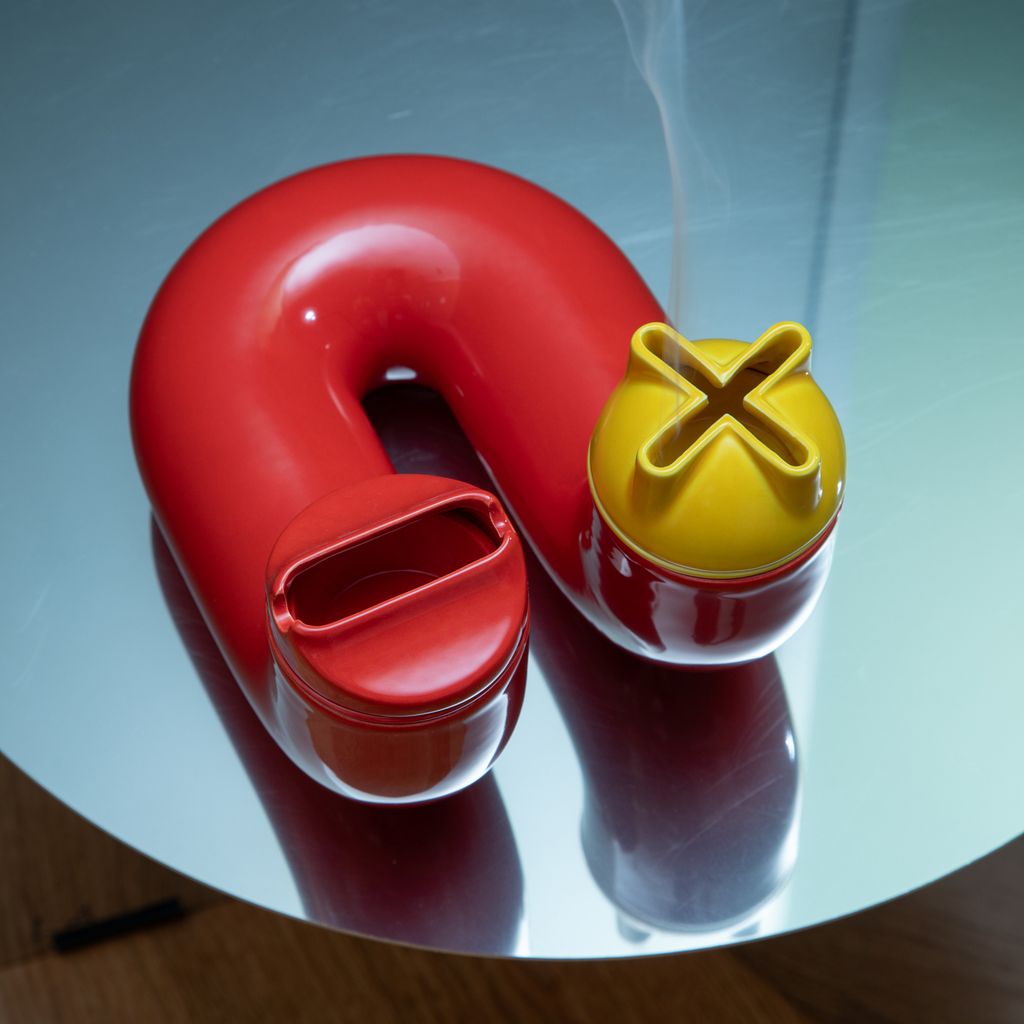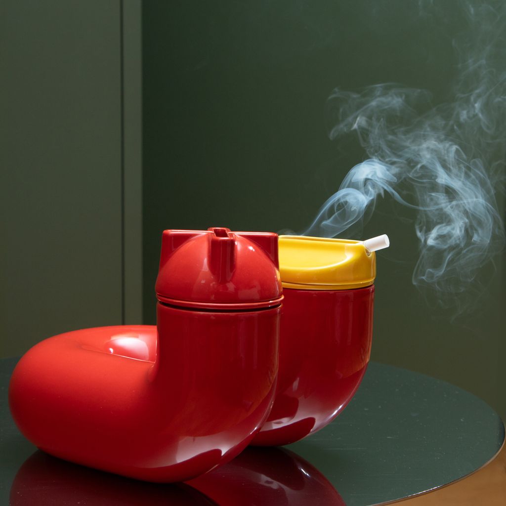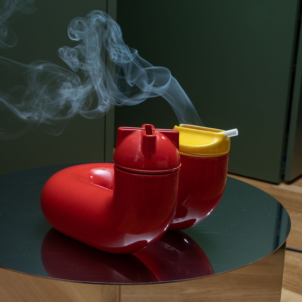 Glazed ceramic ashtray, consisting of two pieces, the container and its cap. It is compatible with U and the Holder.