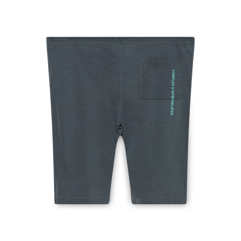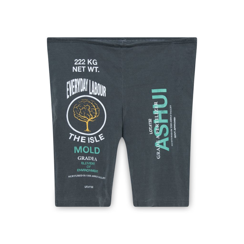 ASHUI 3 QUARTER SWEAT PANT IN CHARCOAL features drawstring waist, graphics on front and back, and 3 pocket design.