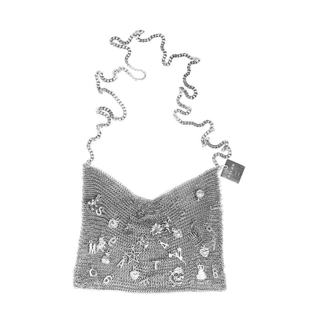 Aslan PLAY Bag features linked stainless steel with curated charms.
