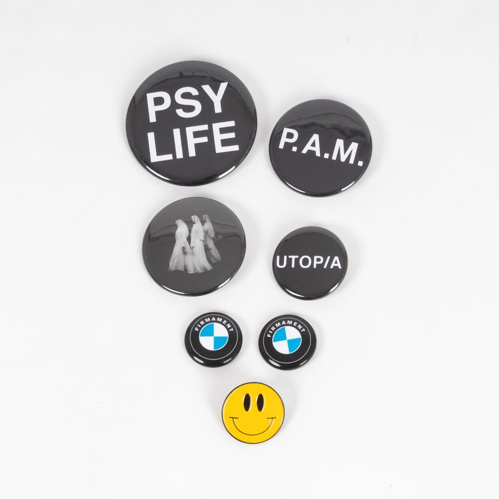 This grouping of 7 pins is comprised of pieces from Perks and Mini as well as Firmament. Features set of 4 Perks and Mini pins, set of 2 Firmament BMW logo pins, and 1 smiley face pin.