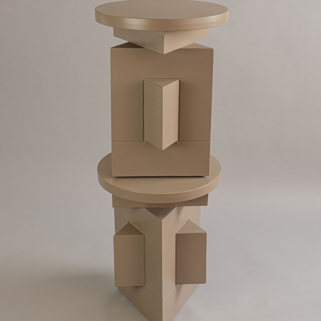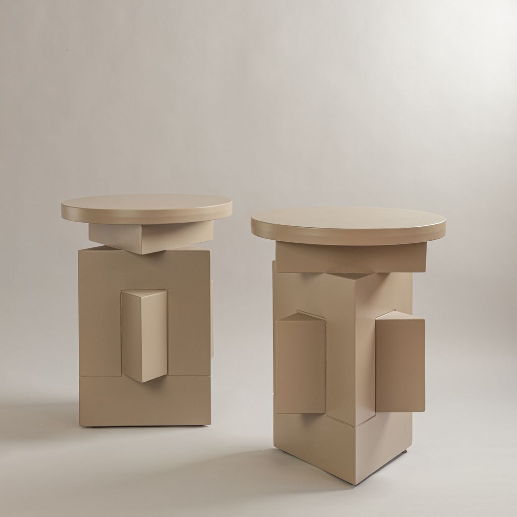 Daniel Couttolenc’s Aster Side Table embodies balance and adaptability through sacred geometry. Precision-crafted in MDF and finished with an elegant lacquer, it interprets the hexagram as a symbol of dual harmony. Thoughtfully composed as three modular parts, it transitions between a unified table, auxiliary stands, and a serving tray. The piece offers both function and introspection, inviting a meditative relationship with form. Custom variations available on request.