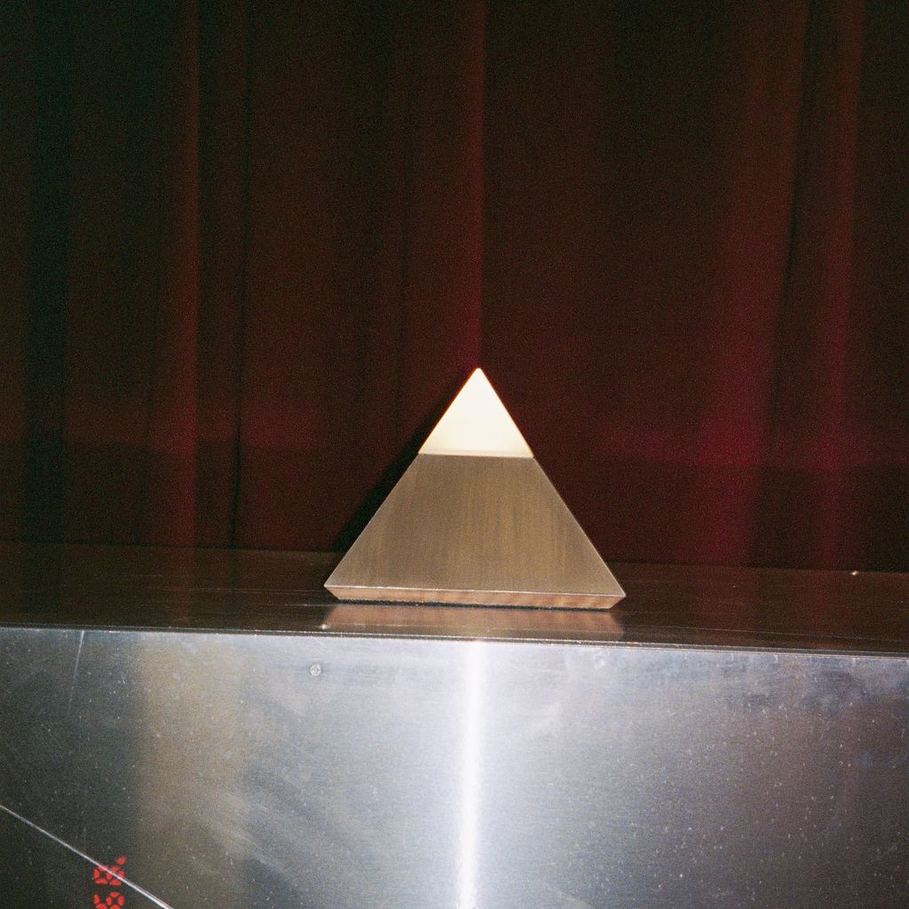 Constructed from brushed aluminium, its pyramidal form stands as both grounded and elemental — a quiet monument to stillness. Within its planes, matter and air coexist; the solid and the intangible find equilibrium. It invites contemplation through restraint, embodying both permanence and impermanence, a moment suspended between weight and light.
