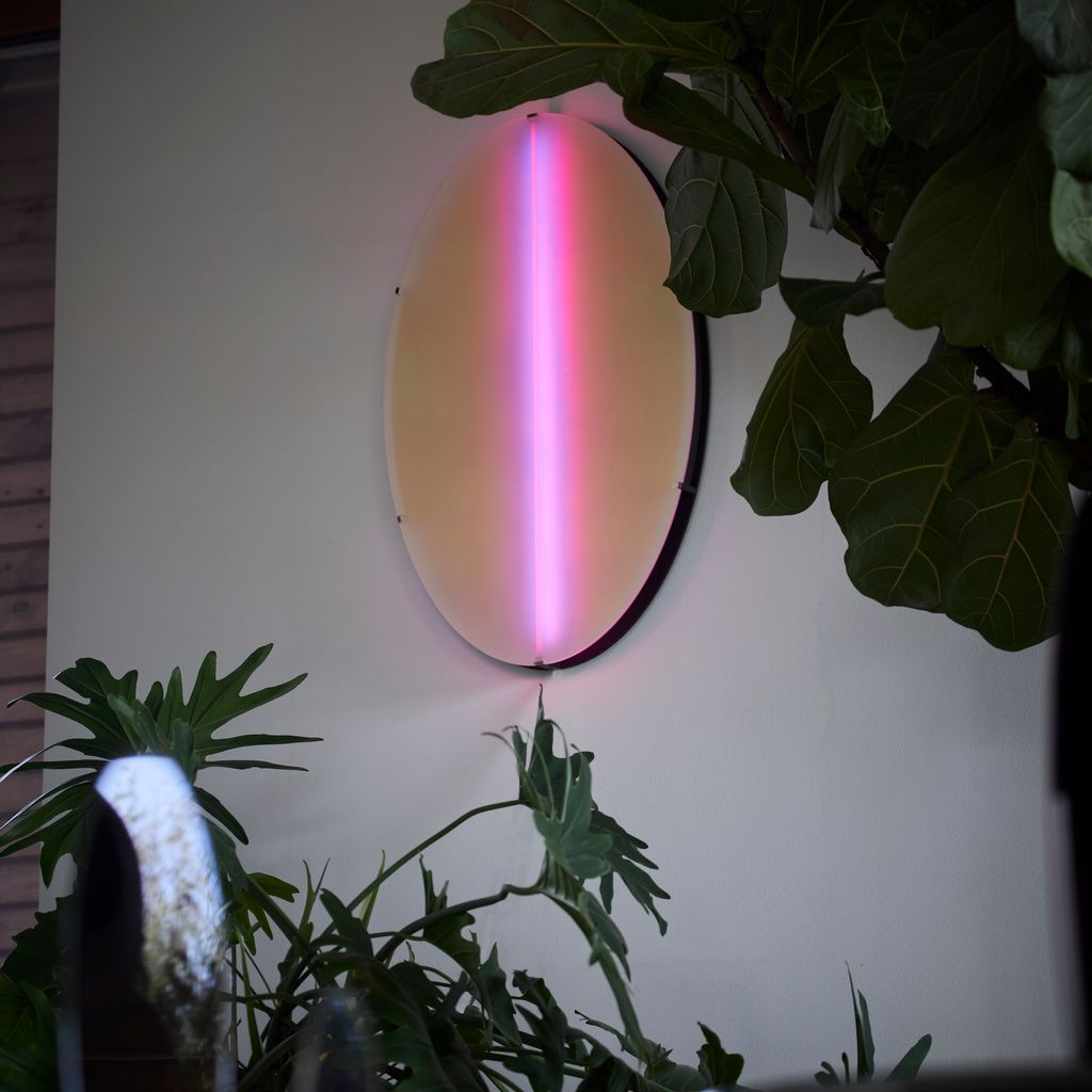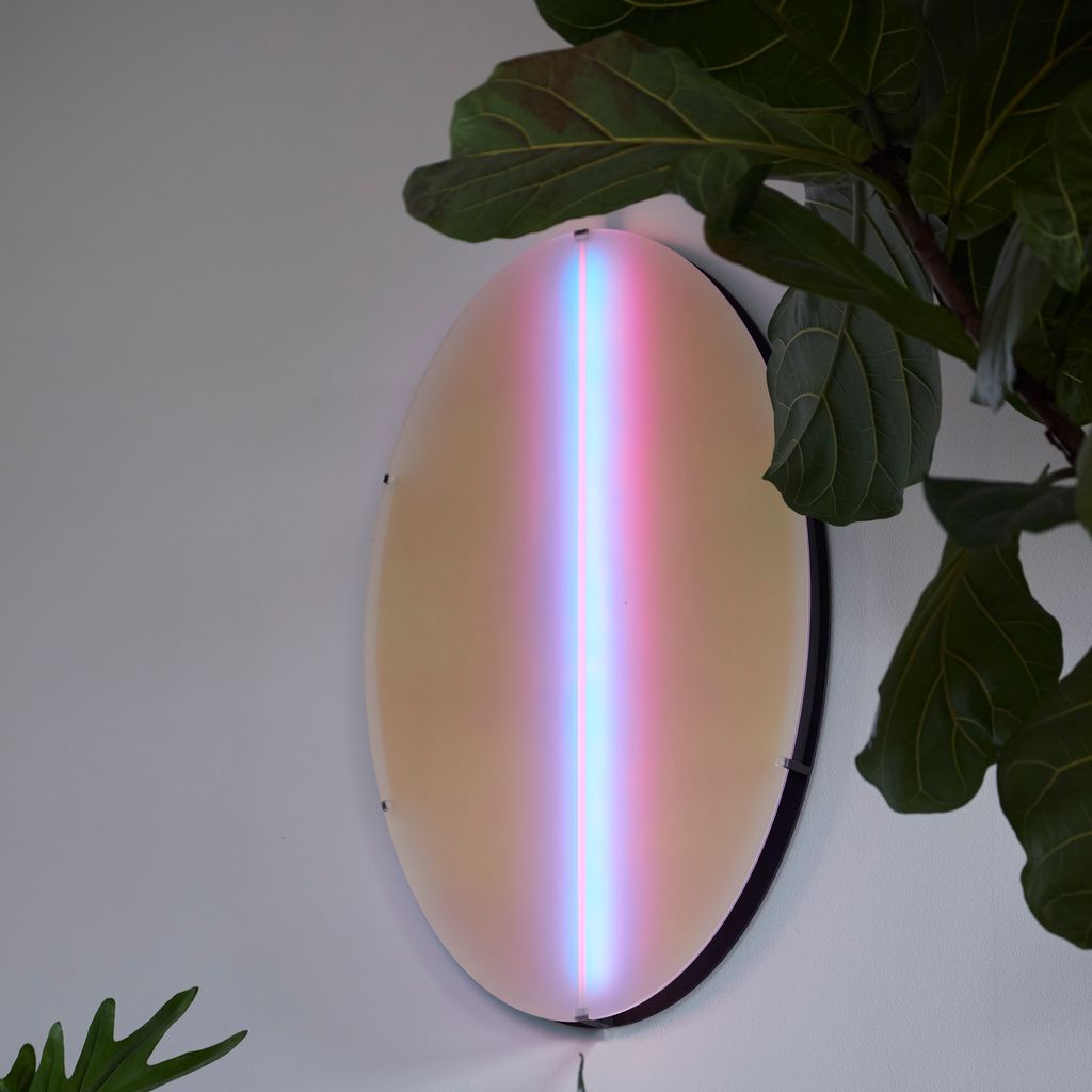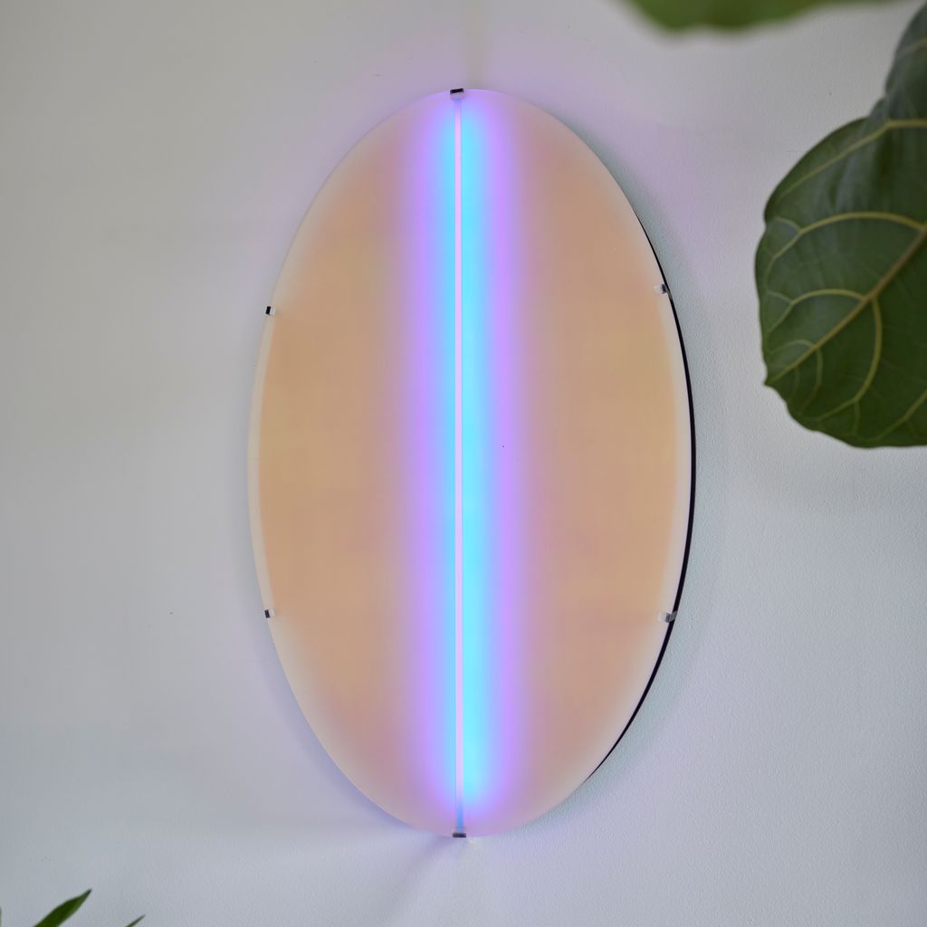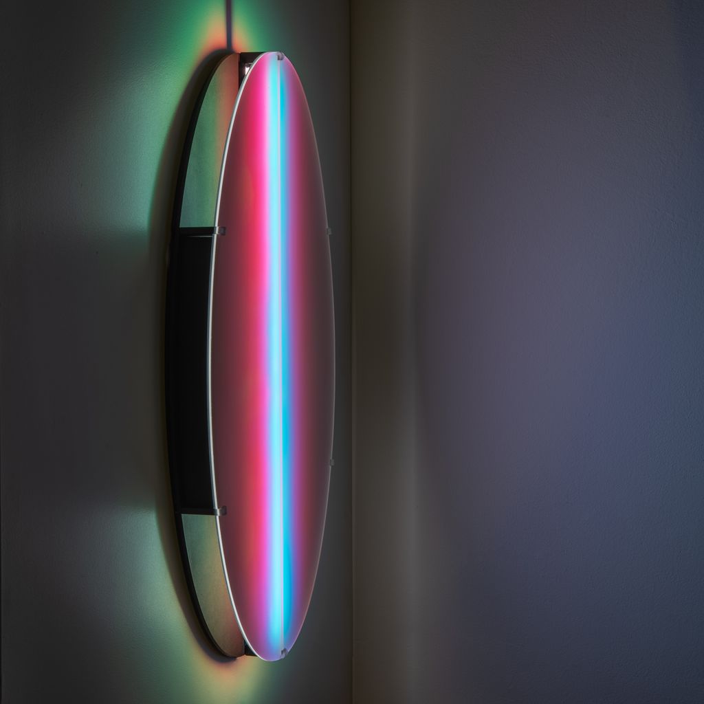 Aurora luminaire can be wall-mounted directly with hidden cables or powered via a socket. Light range: dimmable, complete RGB spectrum.