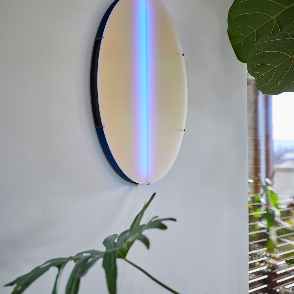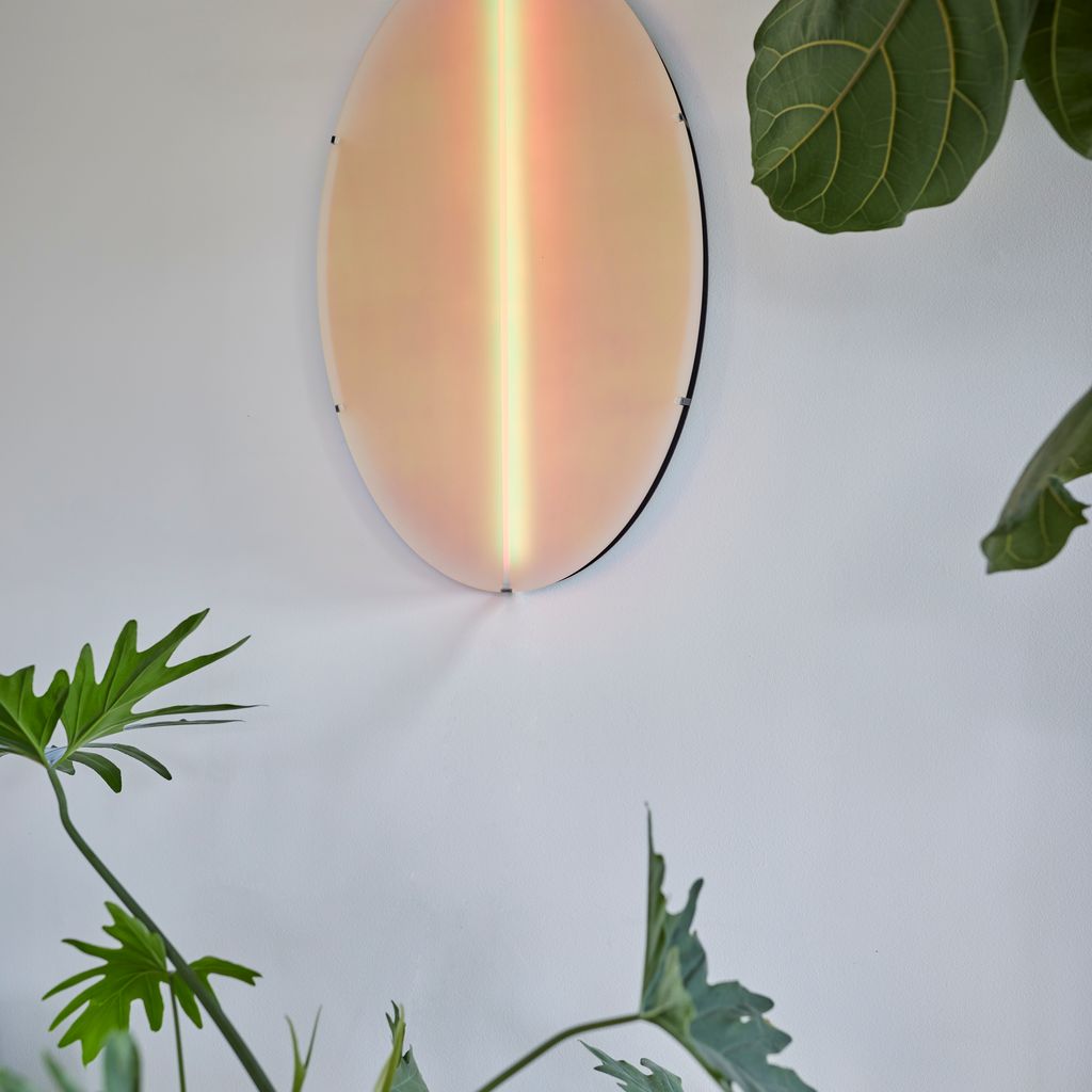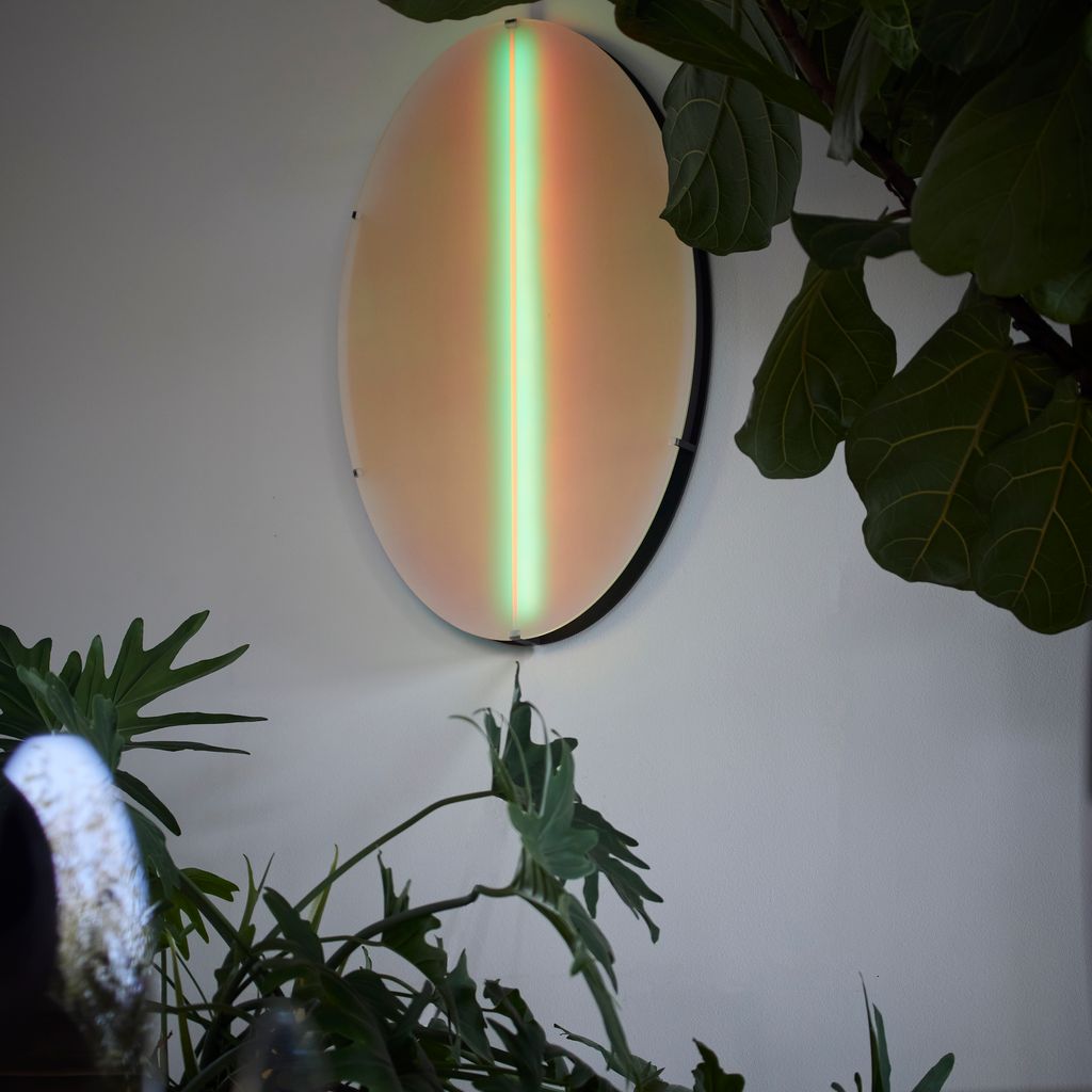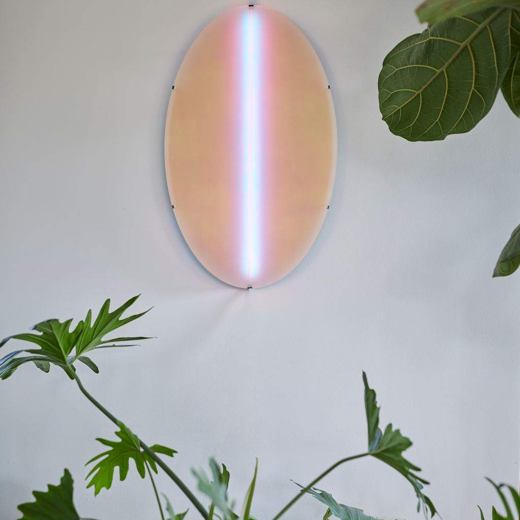 Aurora luminaire can be wall-mounted directly with hidden cables or powered via a socket. Light range: dimmable, complete RGB spectrum.