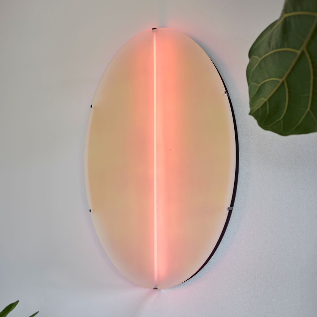 Aurora Frosted is a luminaire inspired by the mesmerizing dance of the Northern Lights, alive with ever-changing patterns of light and color. Its coral-peach frosted body emits a magenta hue when set to white light, while a special optical filter transforms its RGB spectrum into a dazzling, dynamic display. Light intensity and shades can be customized via remote, app, allowing you to create your own color and intensity programs to suit any mood, thus make it both a functional and artistic lighting piece.