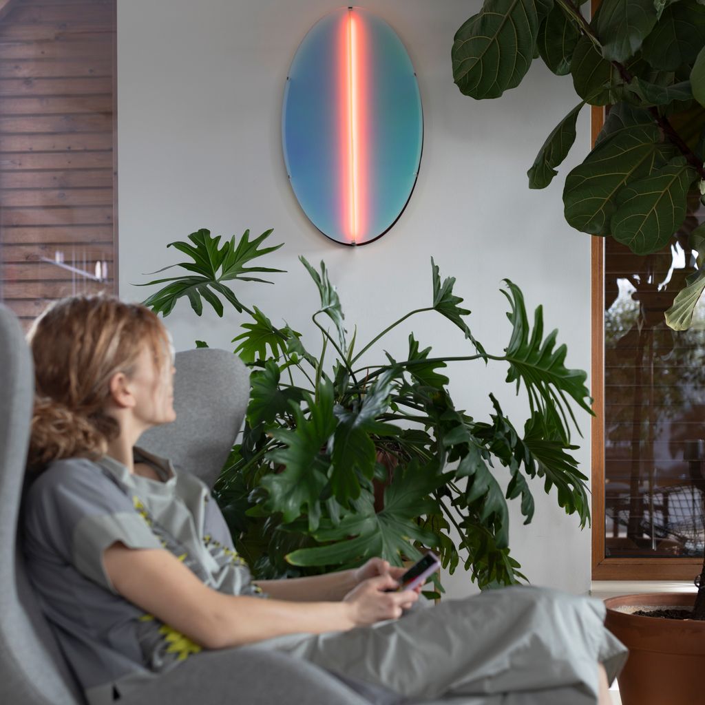 Aurora can be wall-mounted directly with hidden cables or powered via a socket. Light range: dimmable, complete RGB spectrum.