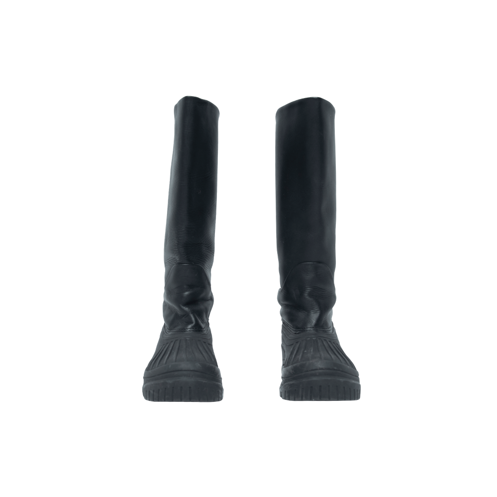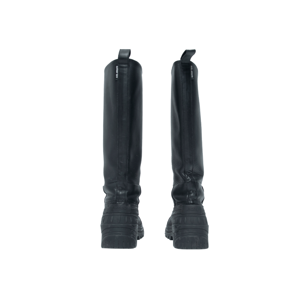 Axel Arigato Black Rain Boots features leather body and rubber uppers and sole.