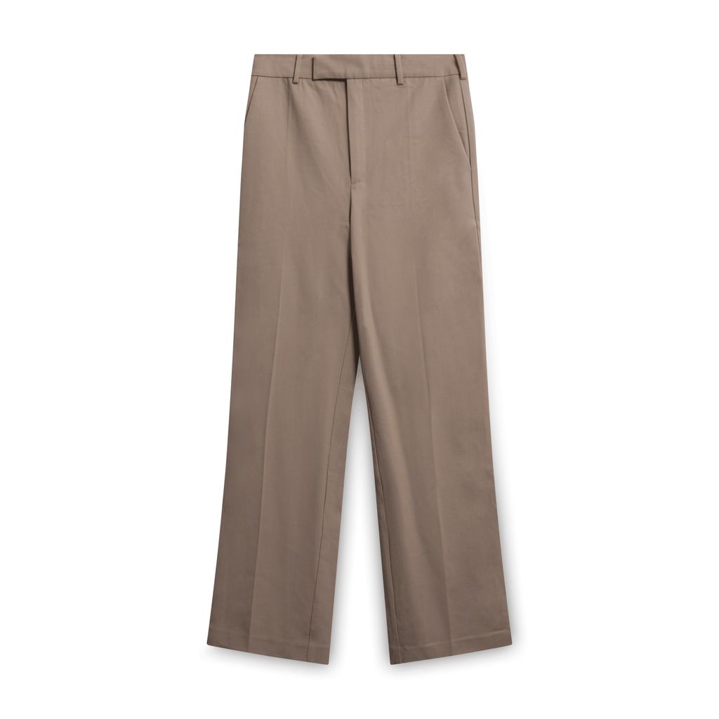 Babaton Atelier Dress Pants in Khaki features button, hook, and zip closure.