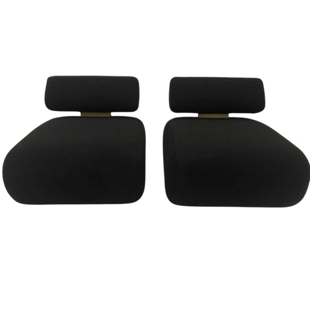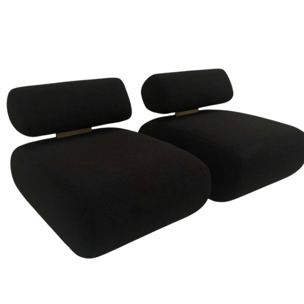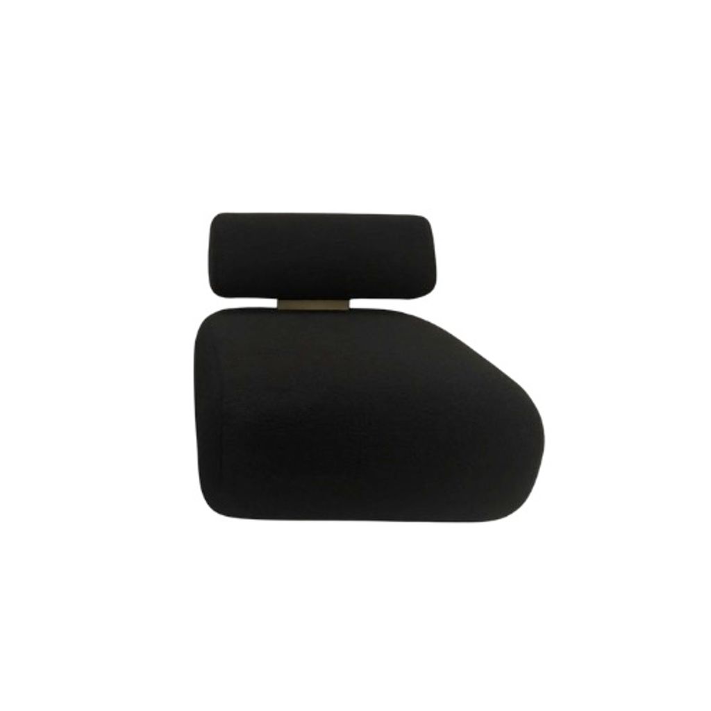 Baby Beluga chair in black boucle wool and polished brass. CONCEIVED WITH THE IDEA OF CREATING PIECES OF FURNITURE THAT APPEAR TO BE FLOATING WITH THE CLOUD-LIKE CHAIRS EXPLORING THE IDEA OF FURNITURE THAT ACQUIRE AN ANTHROPOMORPHIC QUALITY THAT ALLOWS THE OBSERVER TO DRAW ON REFERENCES FROM NATURE OR EVEN SCIENCE FICTION.