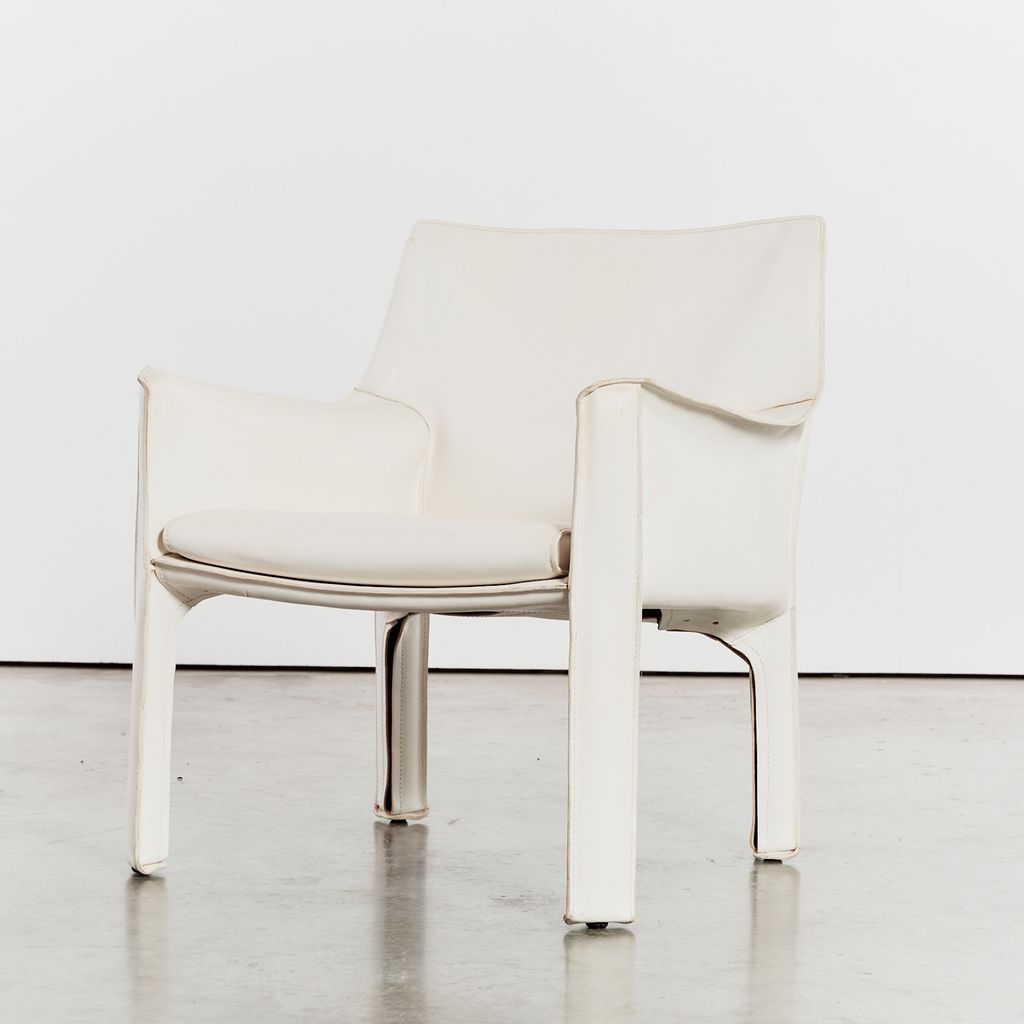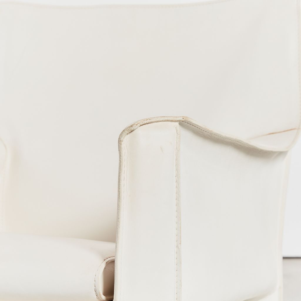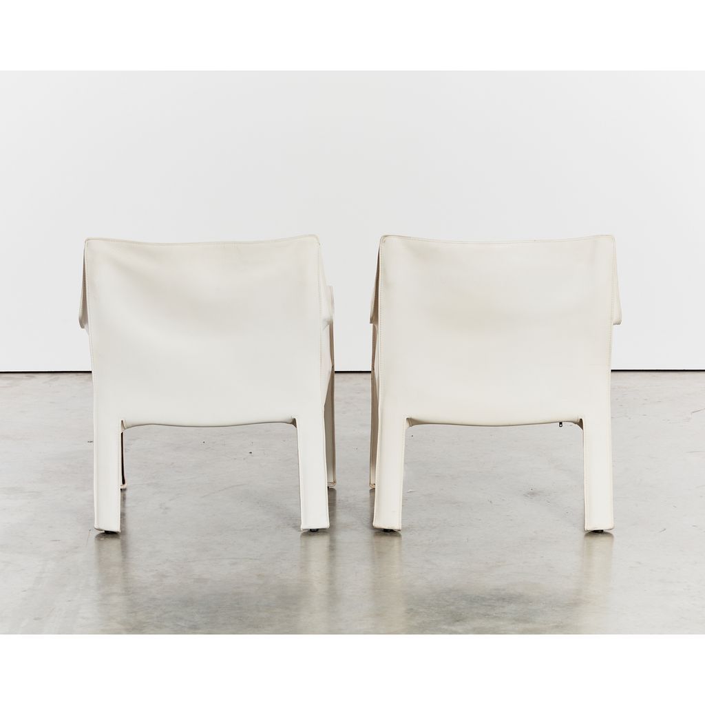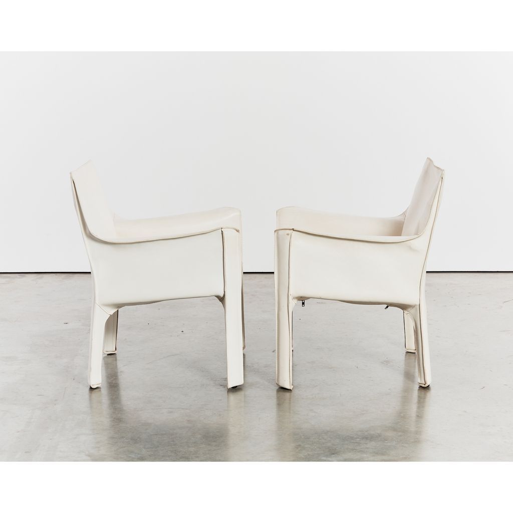 Classic CAB 413 armchairs in off-white leather by Mario Bellini for Cassina. First produced in 1977, the