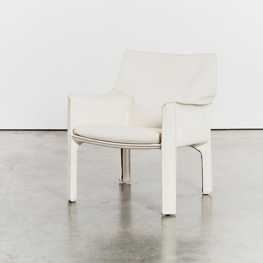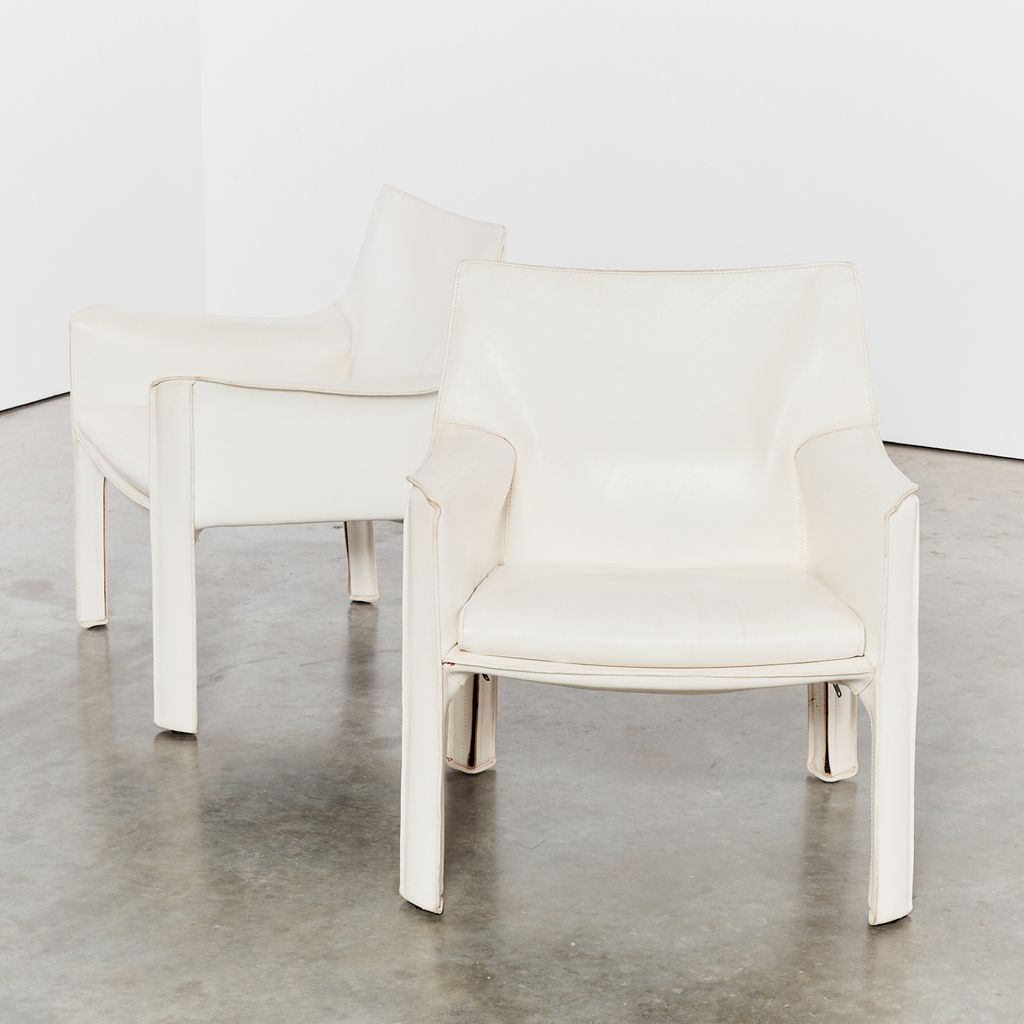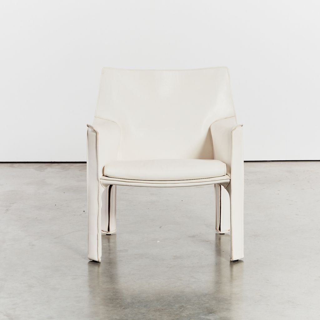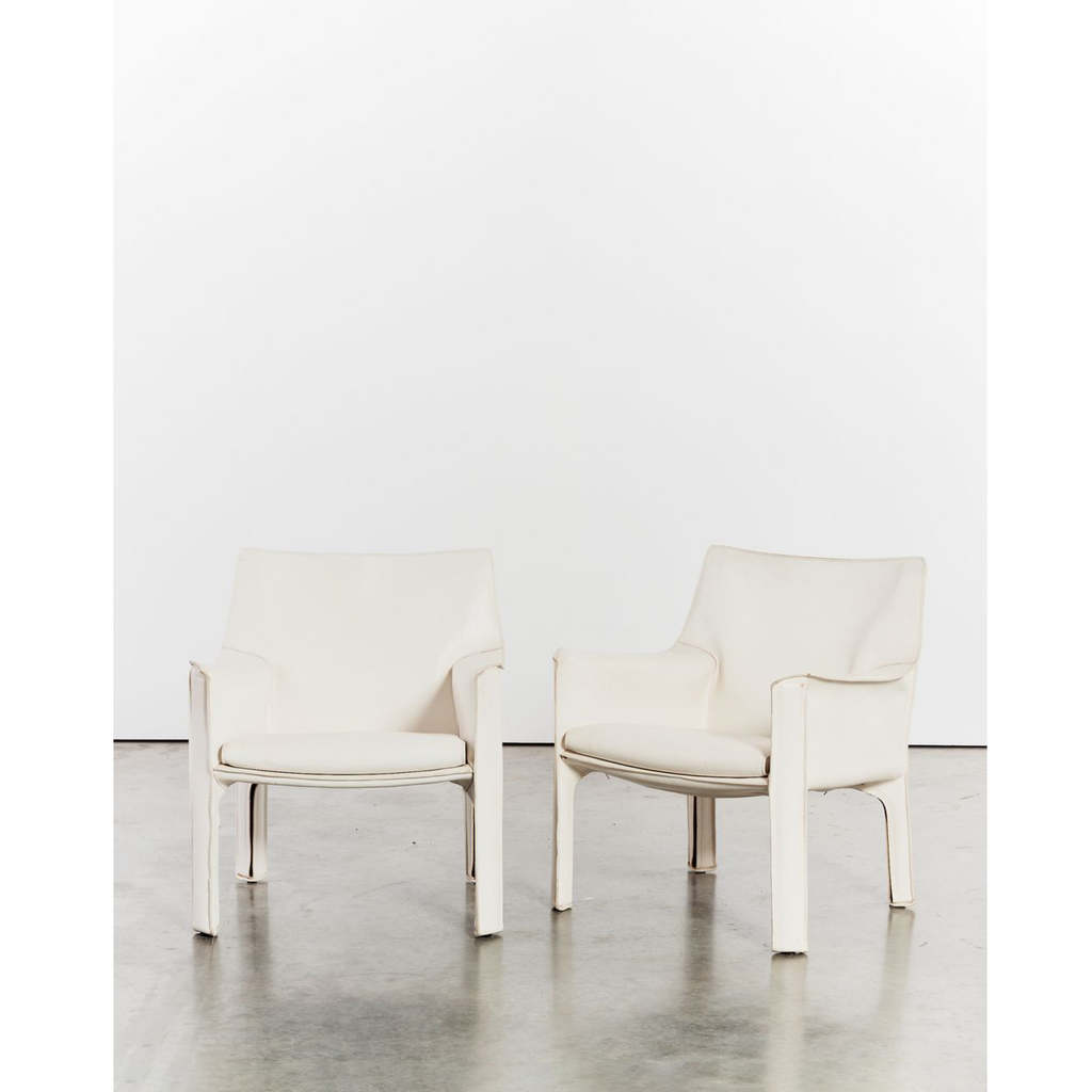 Classic CAB 413 armchairs in off-white leather by Mario Bellini for Cassina. First produced in 1977, the