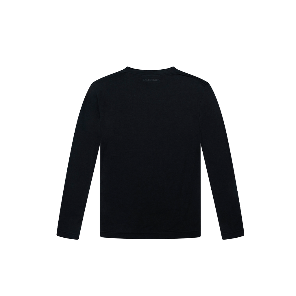 Balenciaga Black Mesh Long Sleeve Shirt features crew neck and semi-sheer fabric. New with tags.