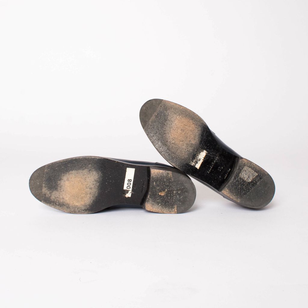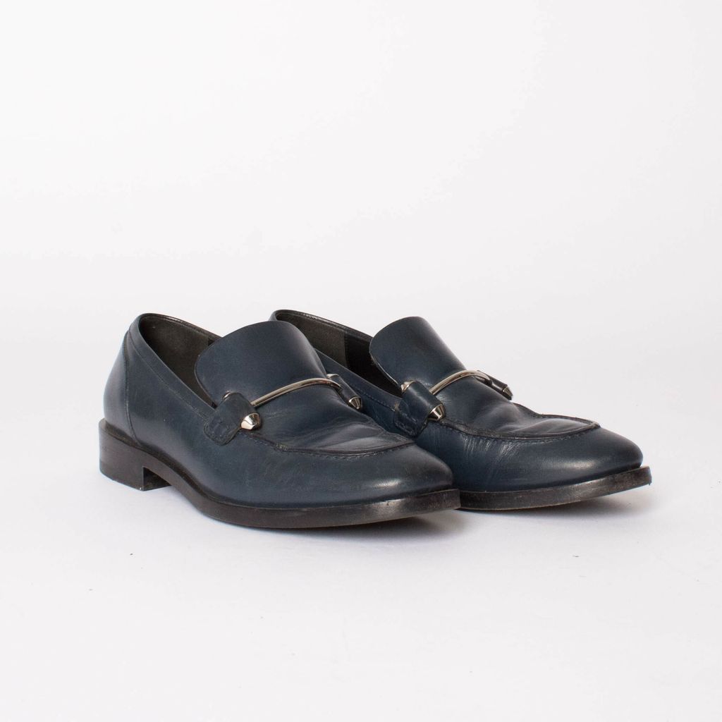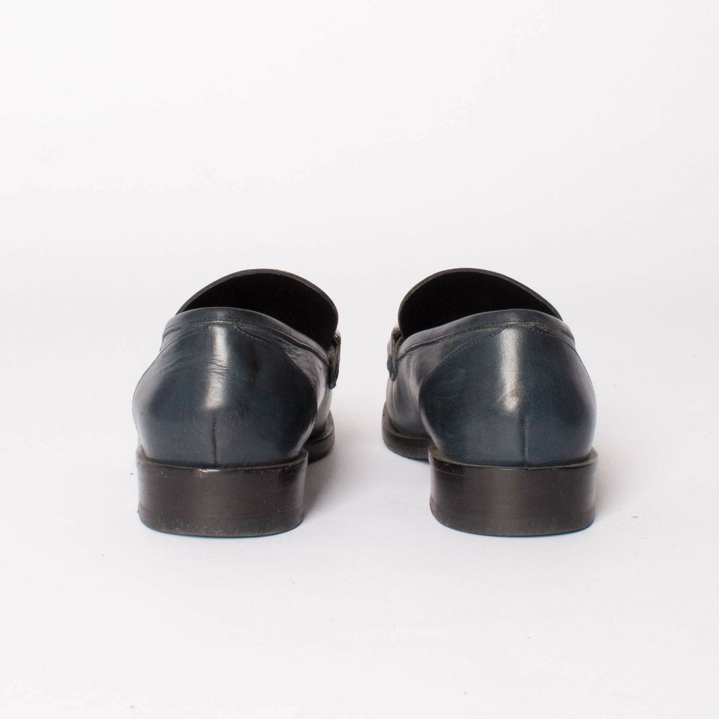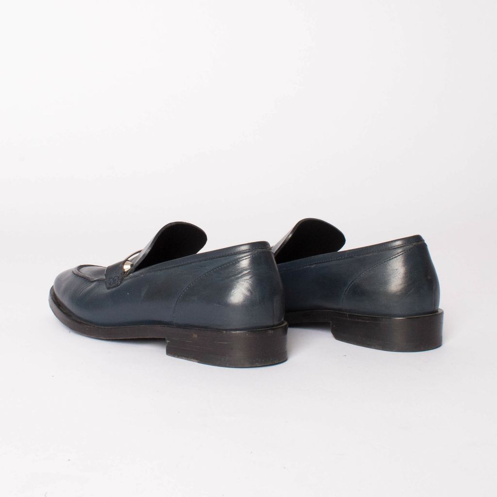 Womens dark blue leather Balenciage loafers with silver hardware. Size 37.