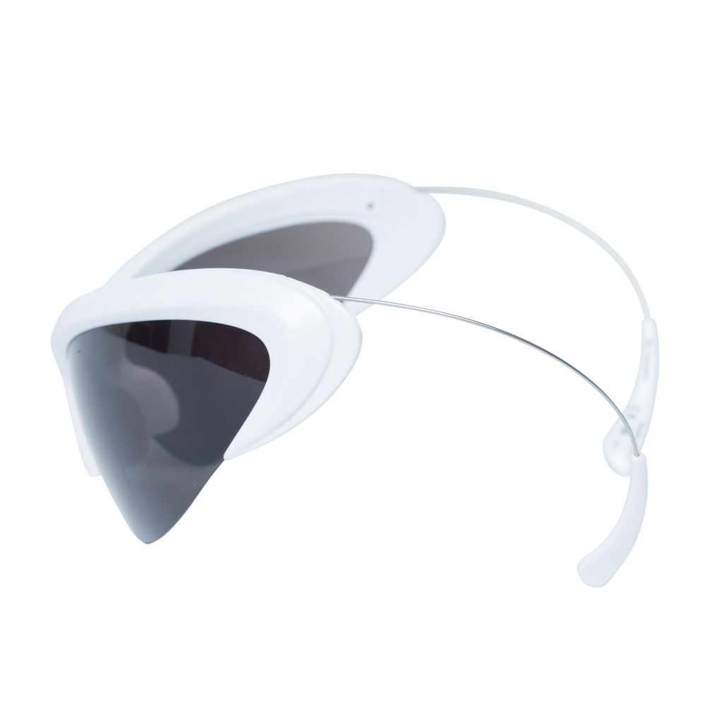 Balenciaga Wire Cat Sunglasses features retractable and adjustable temples, cat-eye shape, and bio-injected nylon frame.