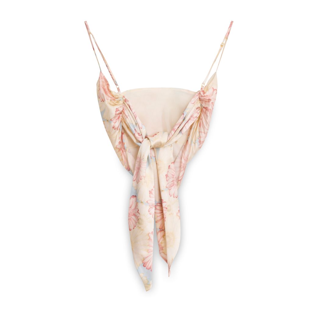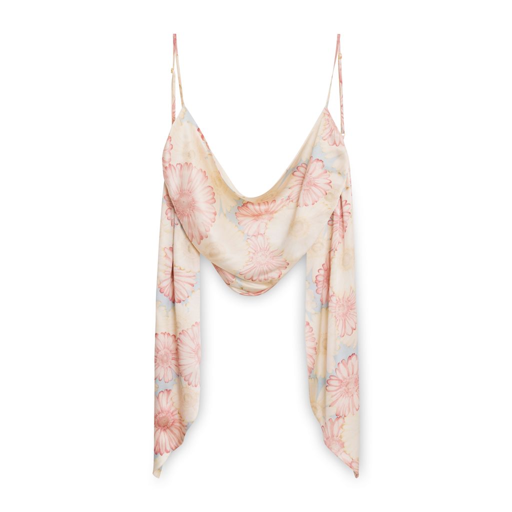 Bandana Top in Yellow Sunflower features 100% silk material.
