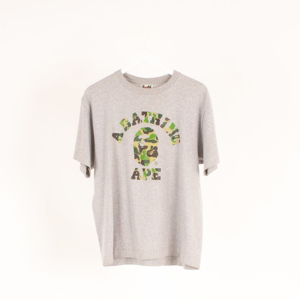 Beloved by celebrities and hypebeasts alike, Bape is a powerhouse in the streetwear scene for its recognizable graphics and printed tees just like this one. Features A Bathing Ape gorilla logo and text front graphic as well as camo fill within the design.