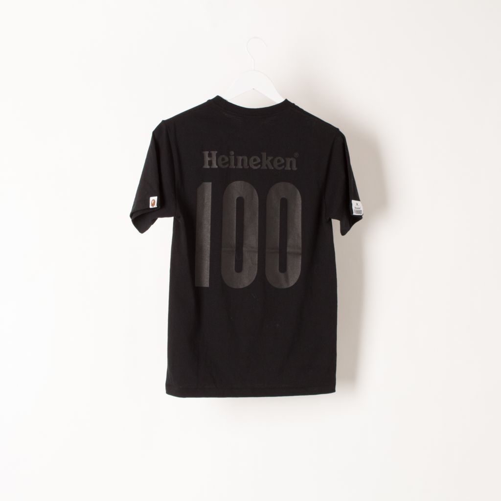 Lightly worn, Bape x Heineken exclusive collaboration tee. Featuring the classic Bathing Ape front graphic and back screen printed Heineken detailing, along with a patched sleeve detail. Sold out instantly.