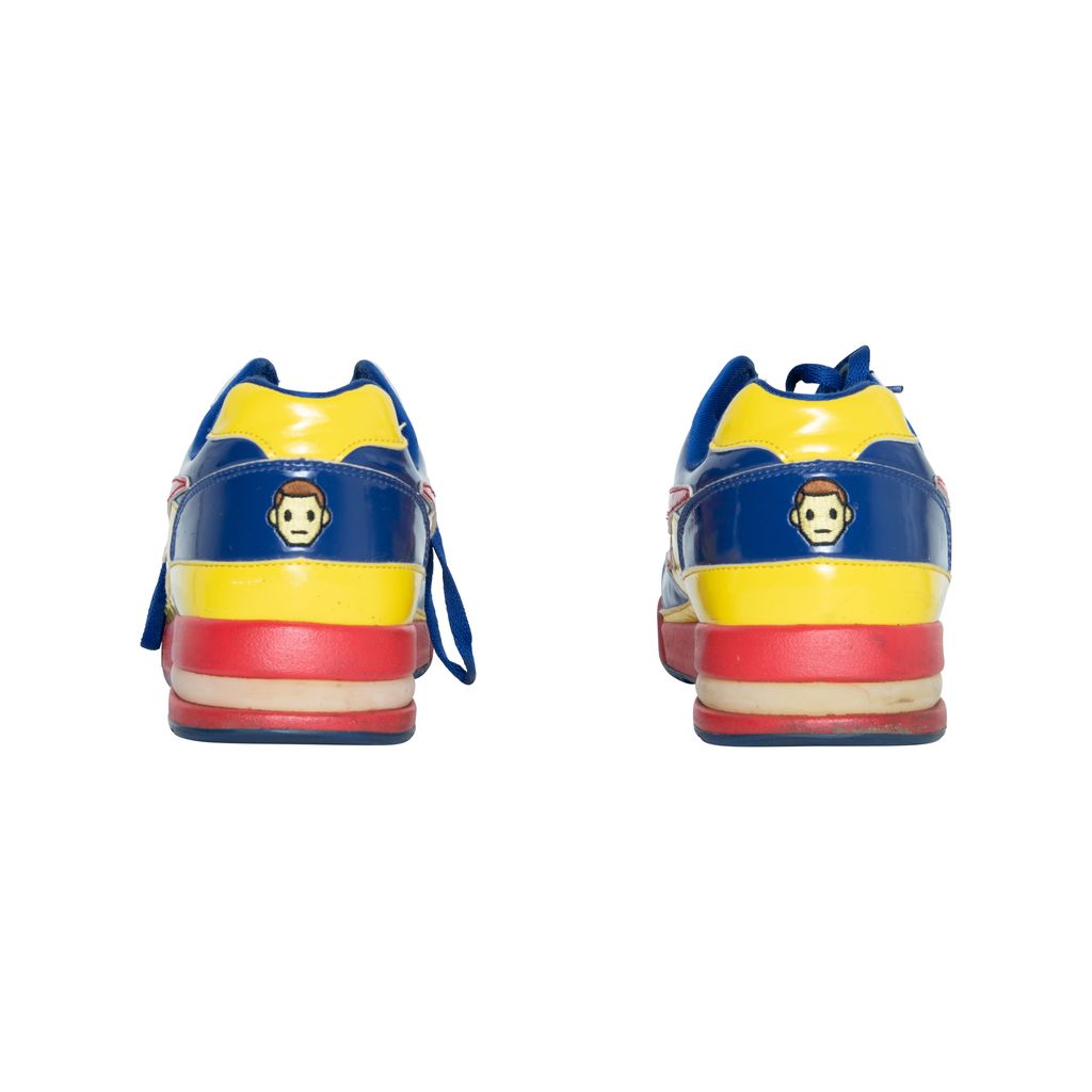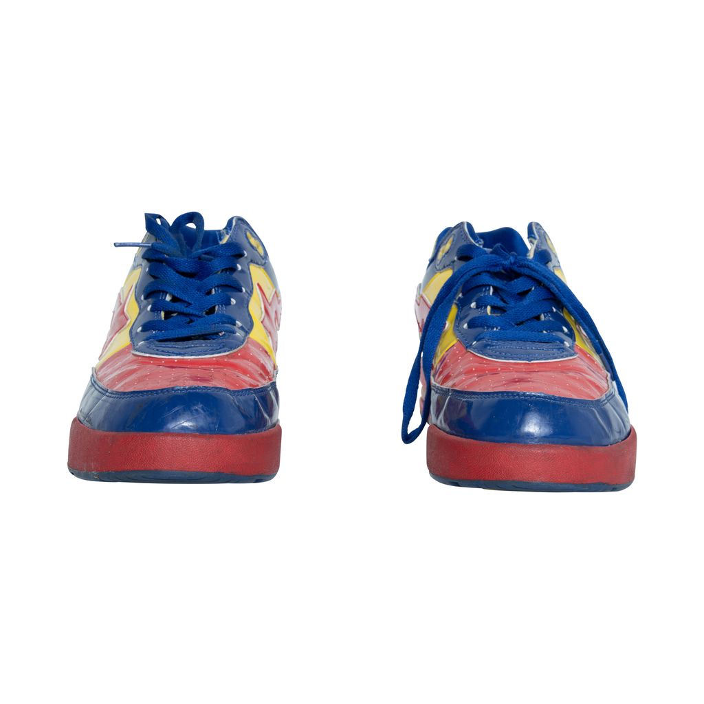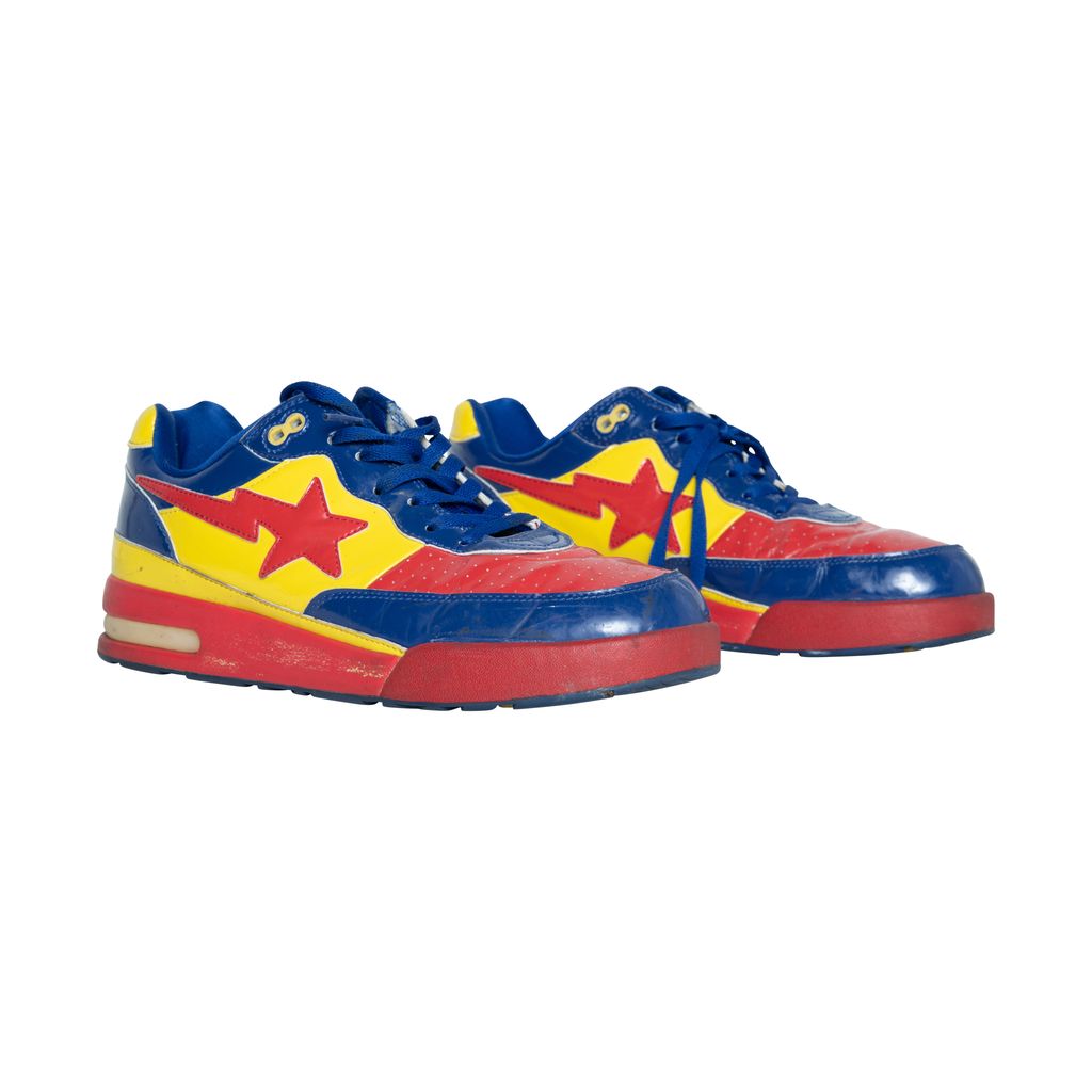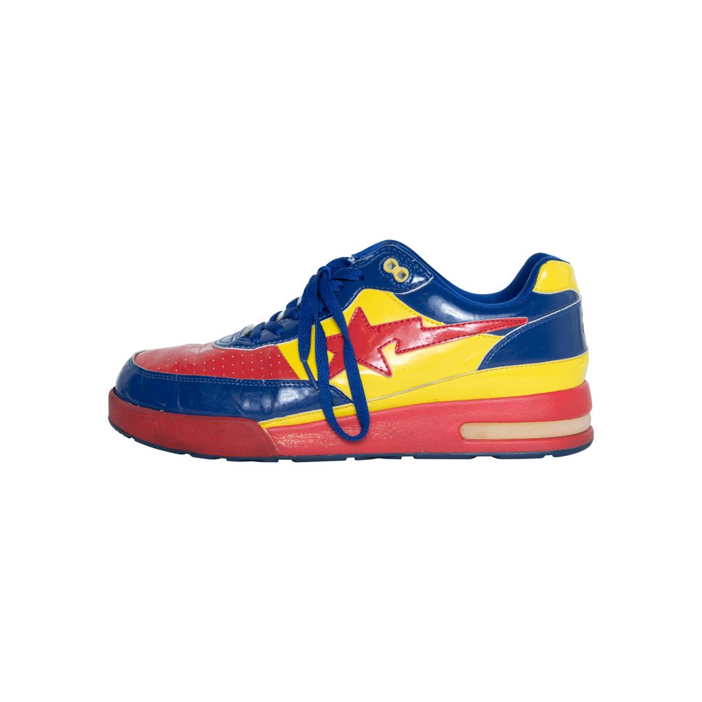 Bapesta FS-001 Low 'Superman' features logo embroidered tongue and red, blue, and yellow color block design.