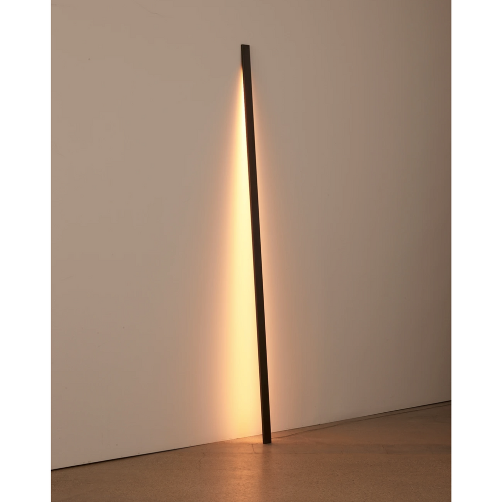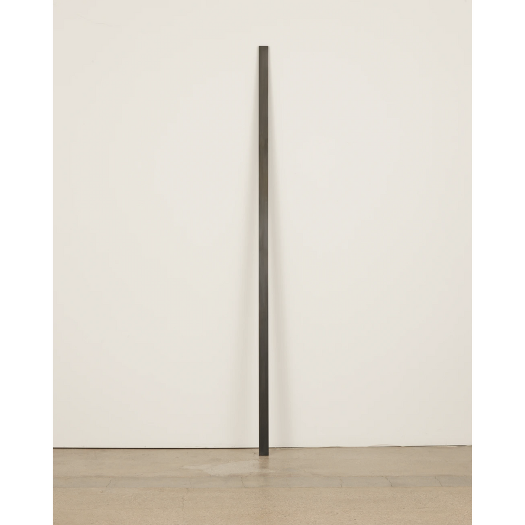 Patinated Steel Bar, warm Led, strip, brass retaining bar, alumimum driver box with brass dimmer knob.