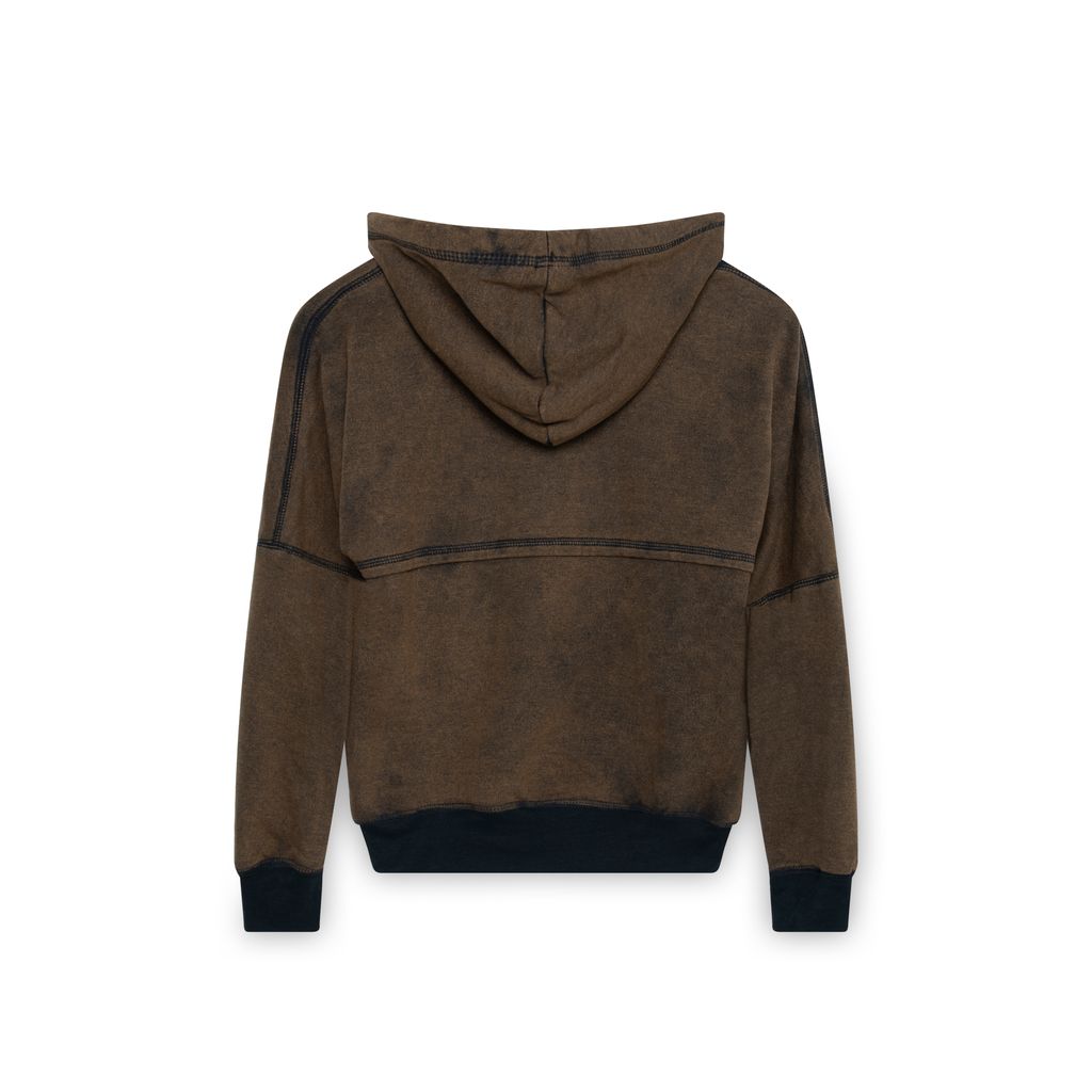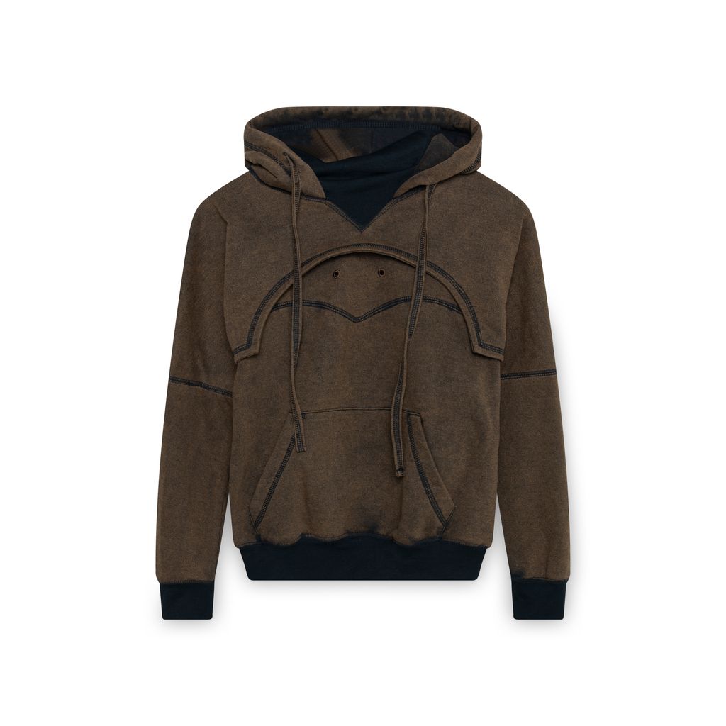Barragan Brown Hoodie features drawstrings at hood, front kangaroo pocket, and black contrast cuffs and waistband.