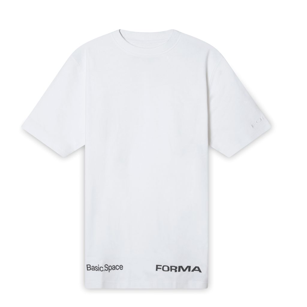 Basic.Space tee features the Basic.Space and Forma logos in black on the base of the tee. Sold exclusively by Basic.Space.