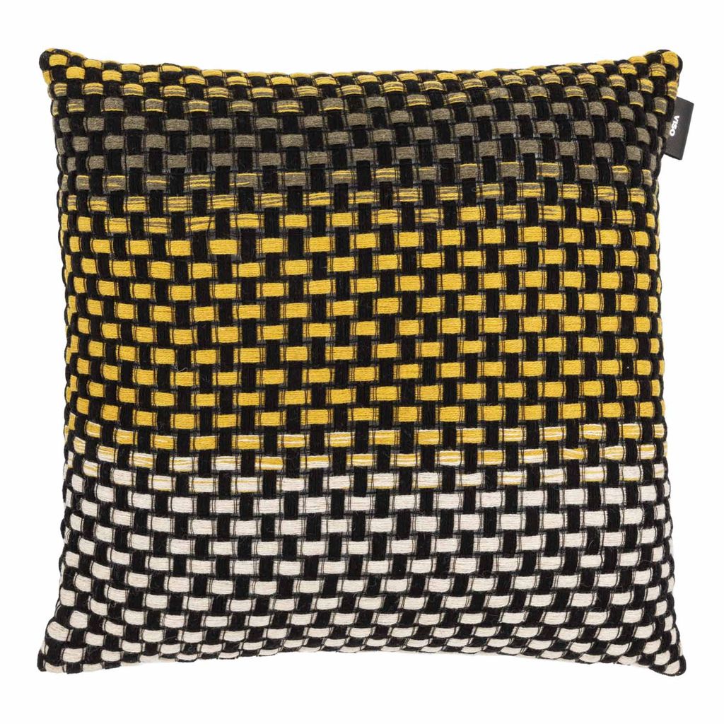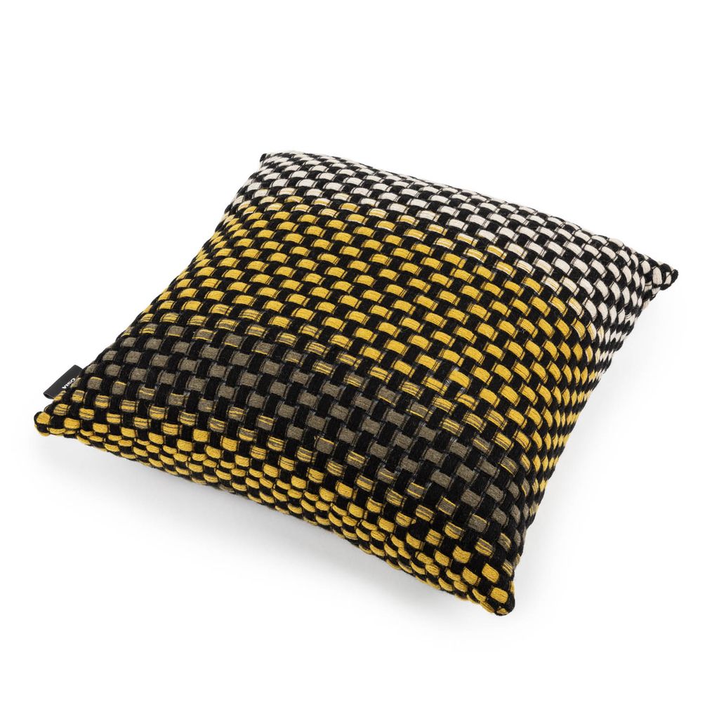 This exquisite pillow takes a twist on traditional technique: it adopts the intrecciato, or basket, weave, typically used with leather to create an intricate weave in wool. The craftsmanship here is nothing short of masterful, from the controlled pattern to the ombre gradient that colors the grid design to the leather Viso label hand-embossed in silver to finish. Made by hand in Italy, this pillow is richly textured and adds a sophisticated accent to your living room. Not pet friendly.