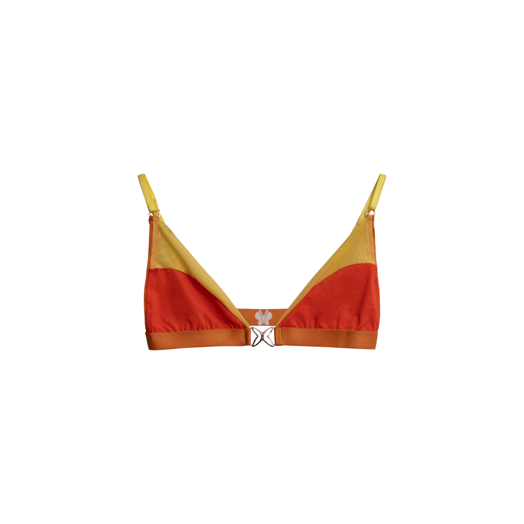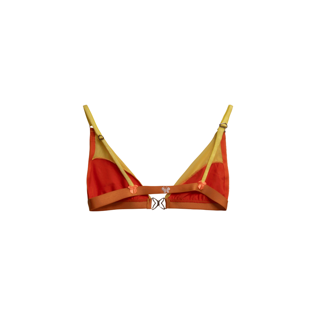 Exude elegance elegance and play in our Batesia Bralette in its flirty orange-and-yellow color palette.