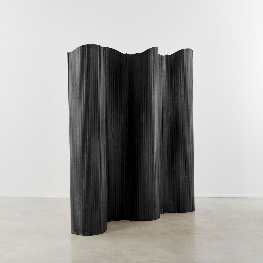 This twentieth-century Art Deco screen strongly recalls the hand of French designer Jomain Baumann. Its pine slats are stained and polished, and the flexibility of the joints – which are capable of unfurling in several configurations – is made possible by an invisible articulated system.
