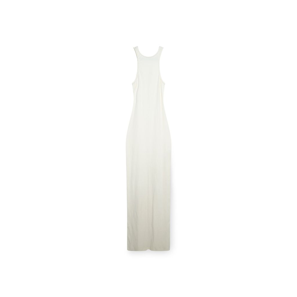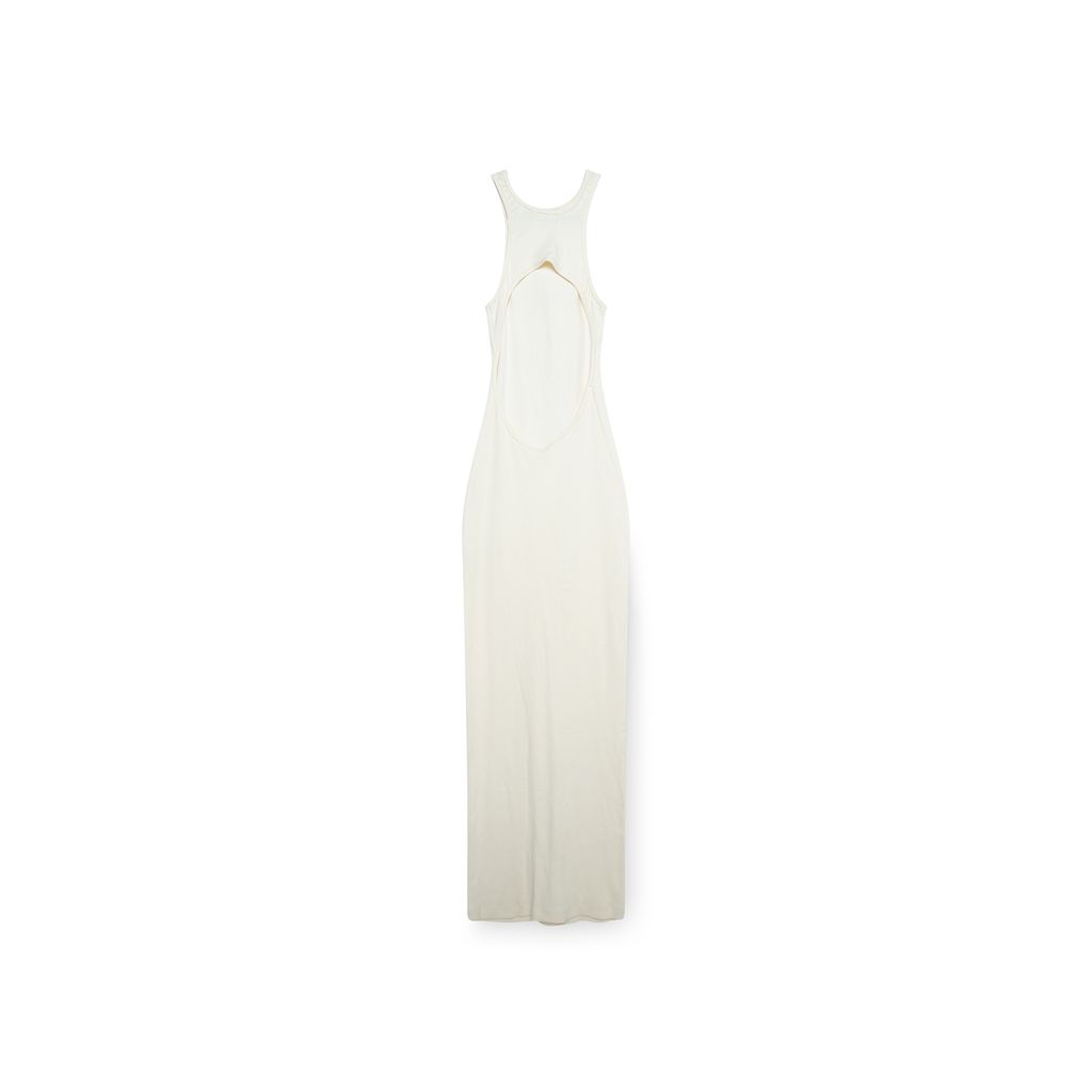 Bazilika Cream Open Back Ribbed Tank Dress features slim fit, maxi length, and soft ribbed cotton.
