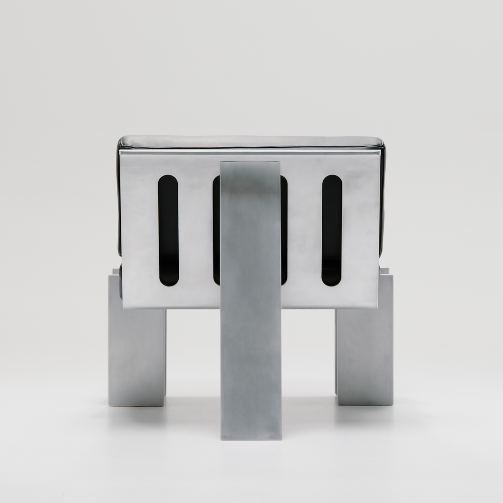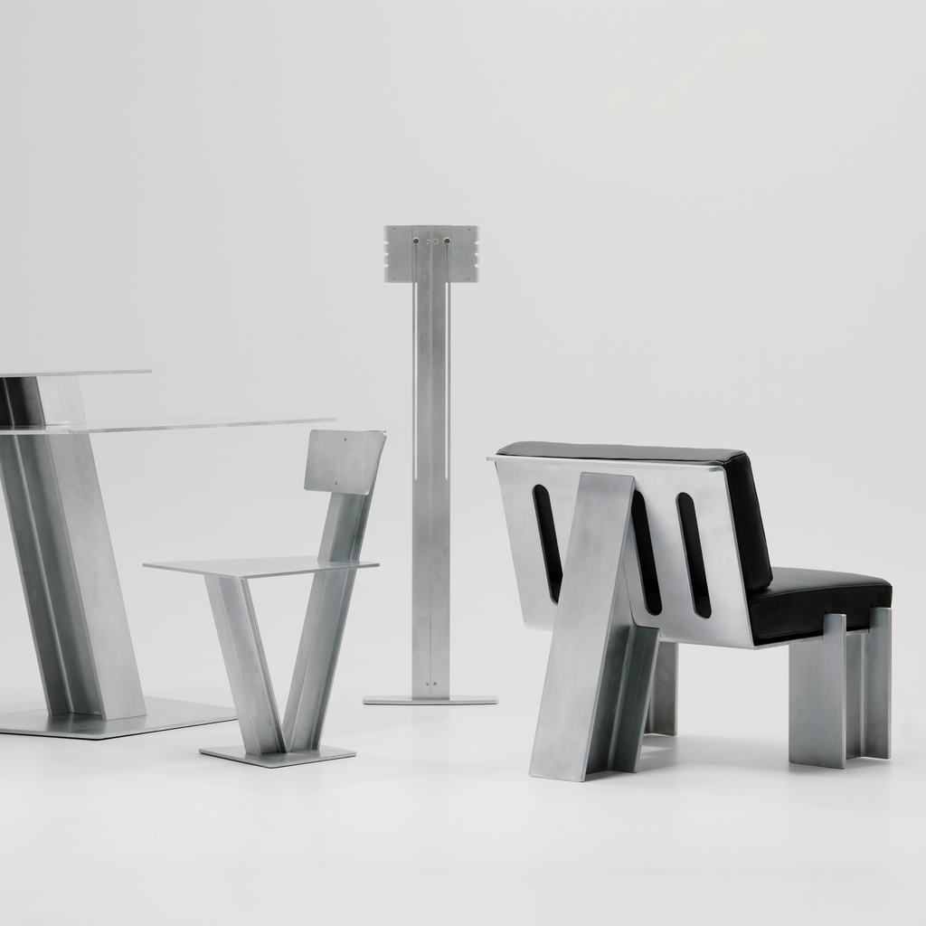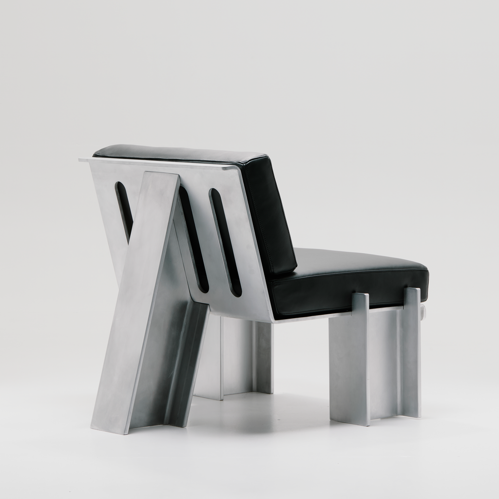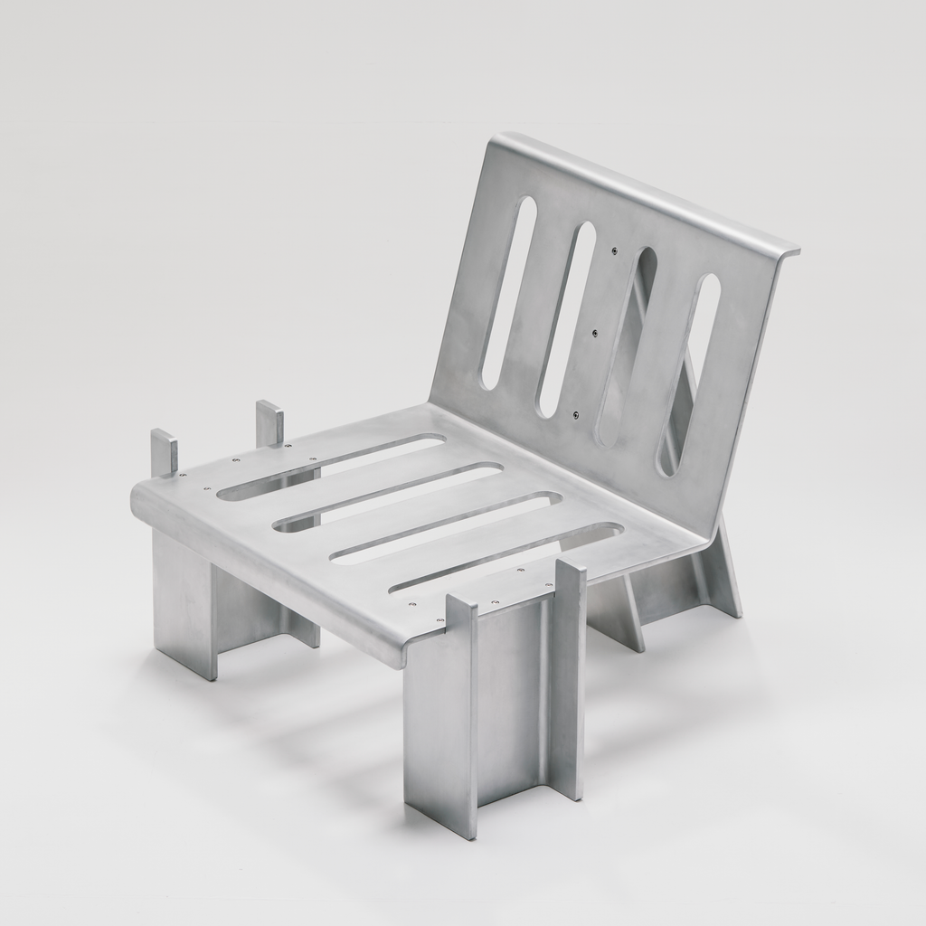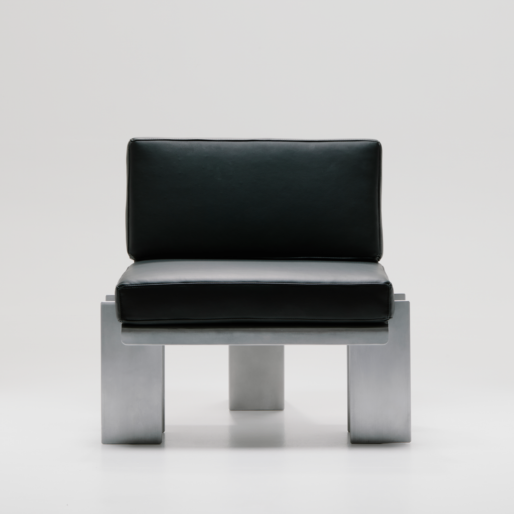 Beams is inspired by the use of structural supports in architectural buildings, further contextualized within the structures they inhabit. This design features full-grain leather, a precisely angled I-beam and laser cut & folded aluminum sheet. The aluminum surface is treated with a waxed finish, balancing a sense of rigid industrialism with utility.