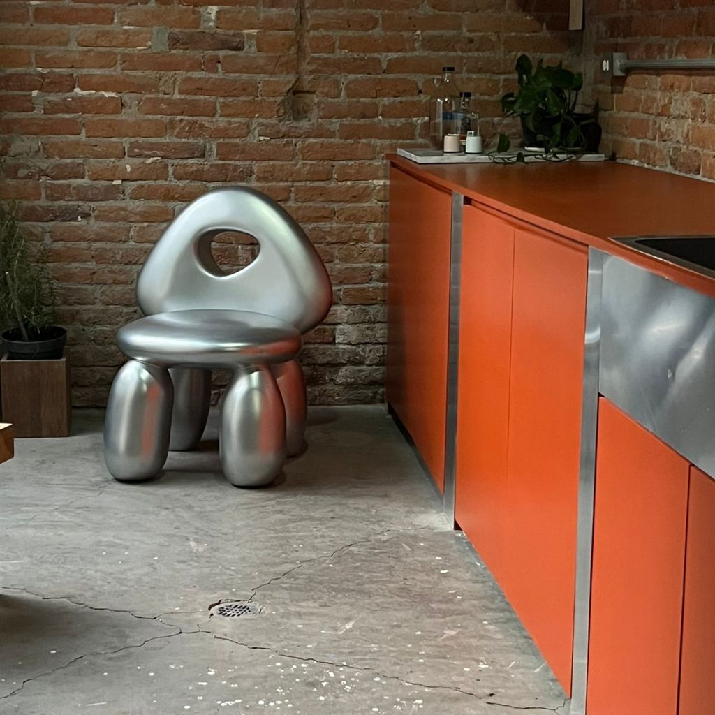 Playful and loud yet versatile statement piece with just a touch of kitsch. Similar to the intimate and low seating offered at traditional restaurants in the mountains of Darband, Tehran, the Behsheen Chair invites you to literally get down with your guests.