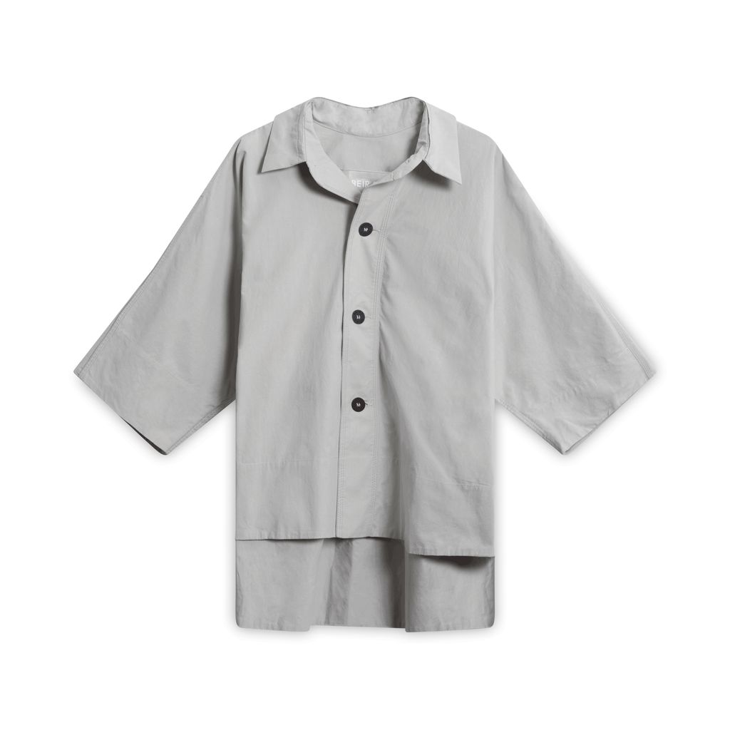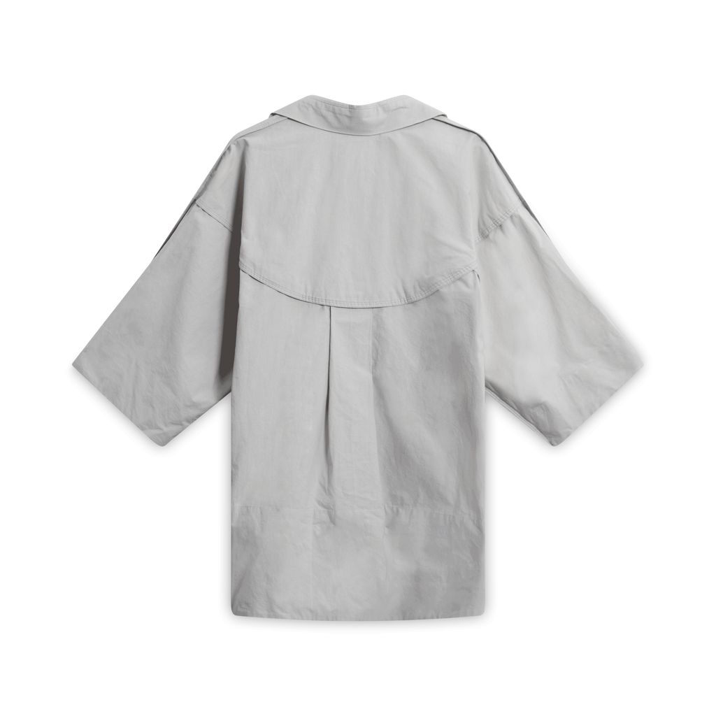 Beira Grey Button-Down Shirt features loose collar and wide-set wooden buttons.