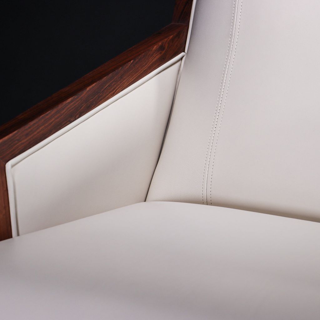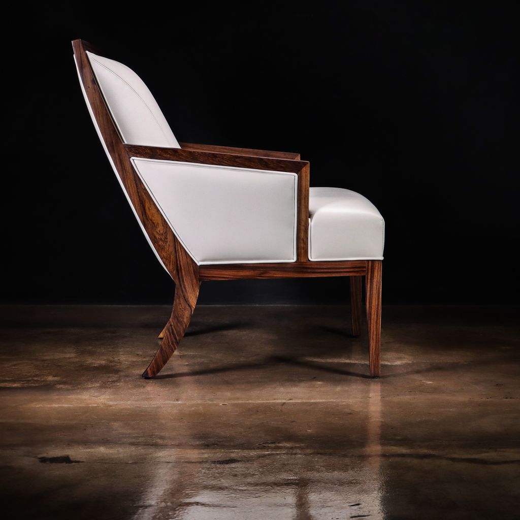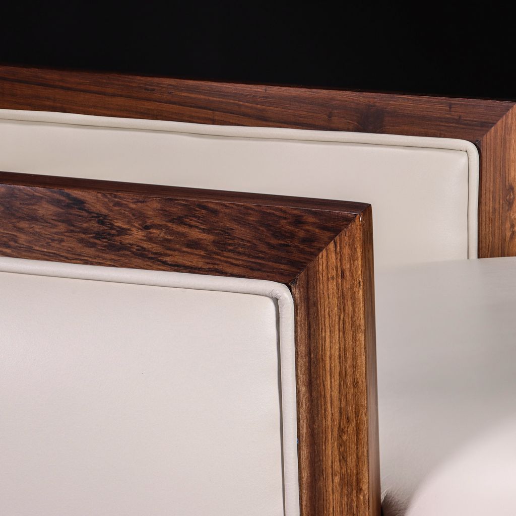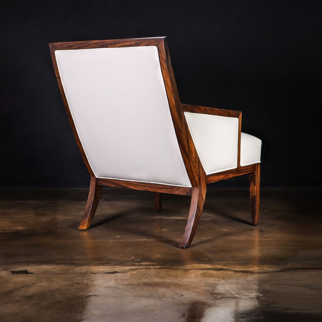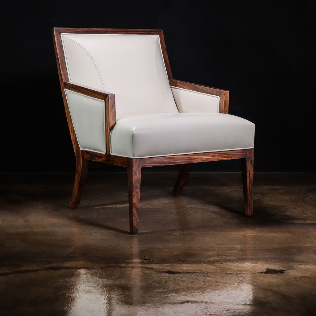 The Belgrano Lounge chair is inspired by mid-twentieth century modernist design and features an ergonomic design that can be customized with the use of accent pillows. It features a decorative stich detail that runs from the top corner of the chair to the seat. Available as shown in Argentine Rosewood and leather or customizable to your desired size, shape, and finish.