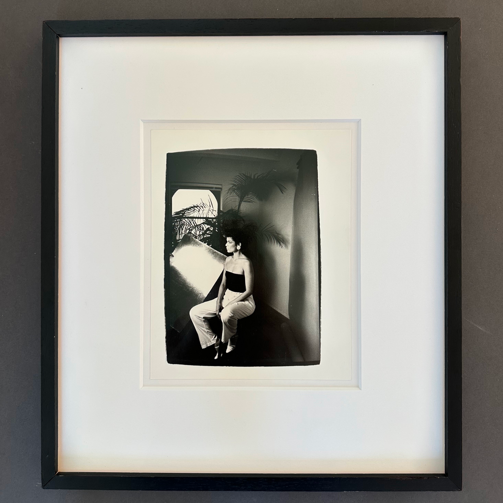 Framed photograph of Bianca Jagger, circa 1978, by Andy Warhol. This is a unique work. This work is stamped on the verso by the Estate of the Artist and The Andy Warhol Foundation for the Visual Arts and also includes a Foundation number which is written on verso. Work comes with a Certificate of Provenance.