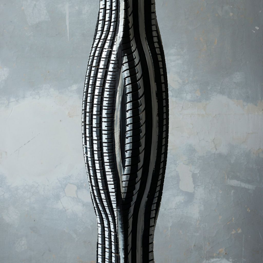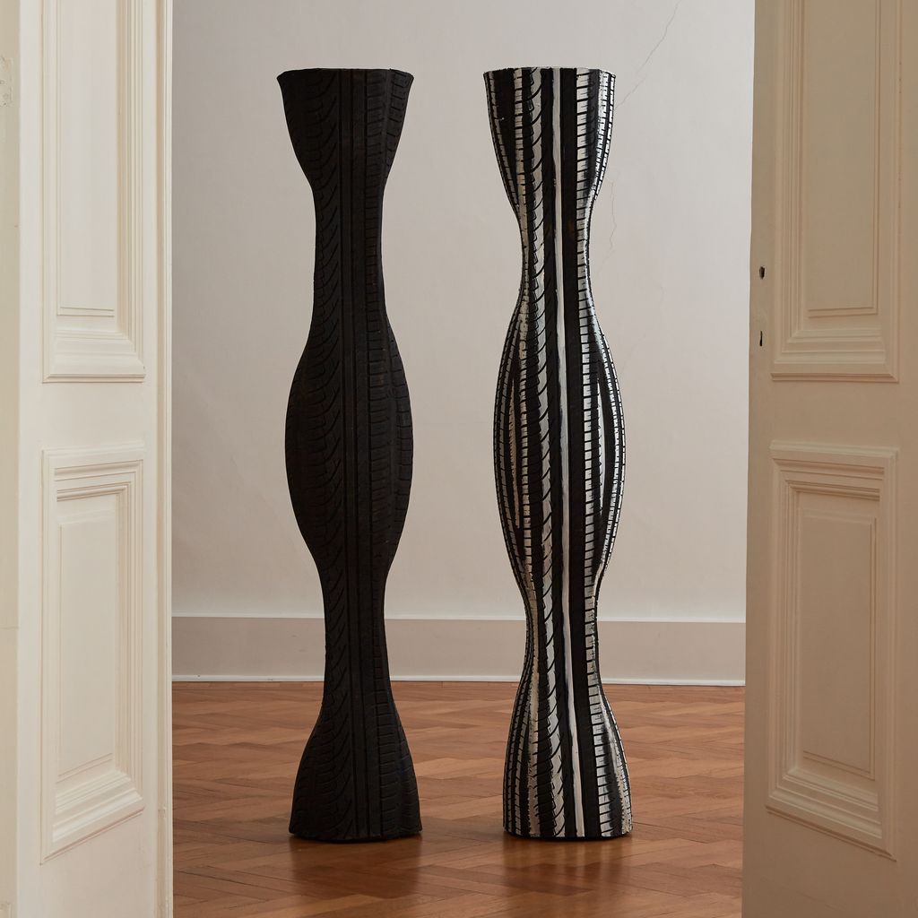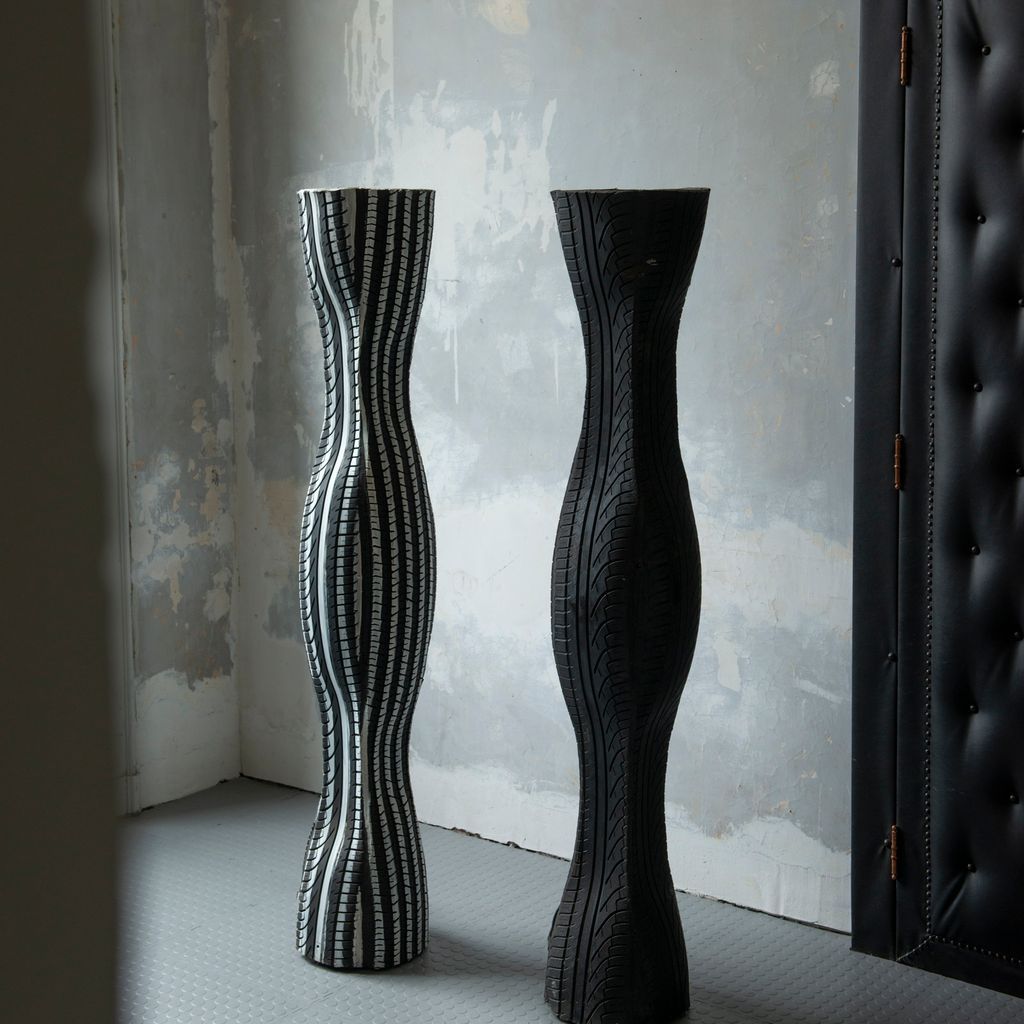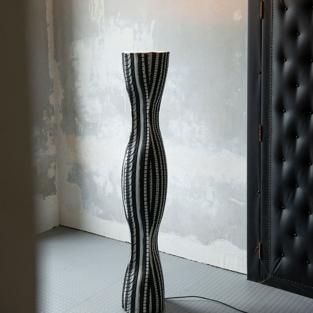 “Bibendum” floor lamp, handcrafted from recycled tires by Belgian Artist Ludovicus Van Beek in the early 90s.