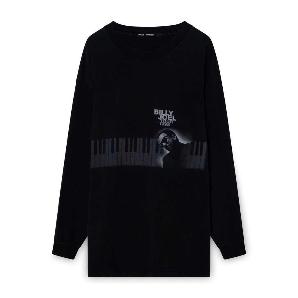 Billy Joel 1998 tour long sleeve vintage concert t-shirt features a graphic of Billy Joel and his trademark piano keys.