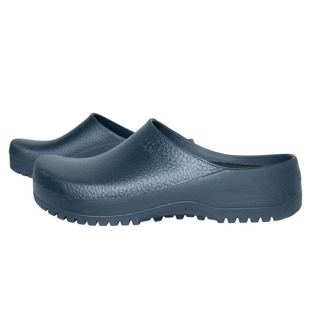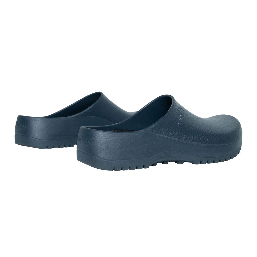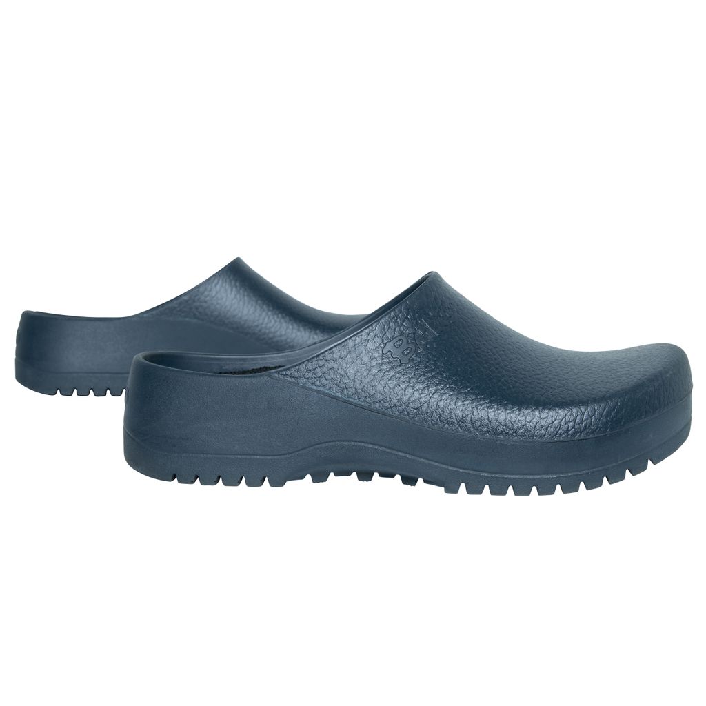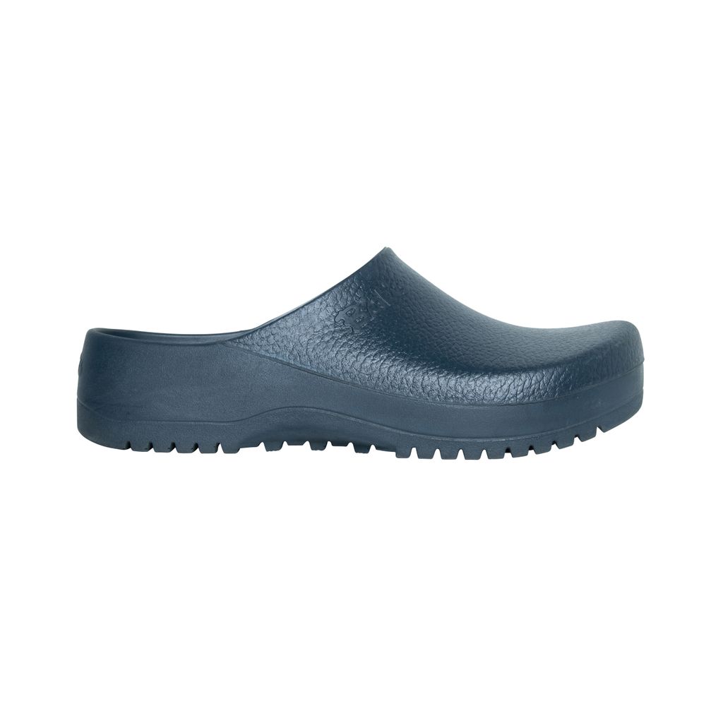 Birkenstock Super-Birki Clog in Navy Blue features removable, anatomically shaped cork-latex footbed, fabric footbed lining, and oil and grease resistant sole.