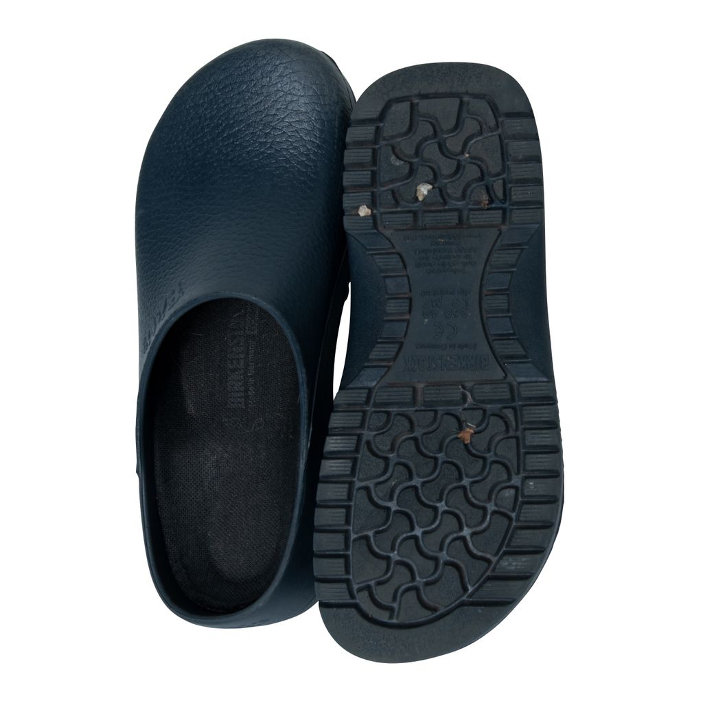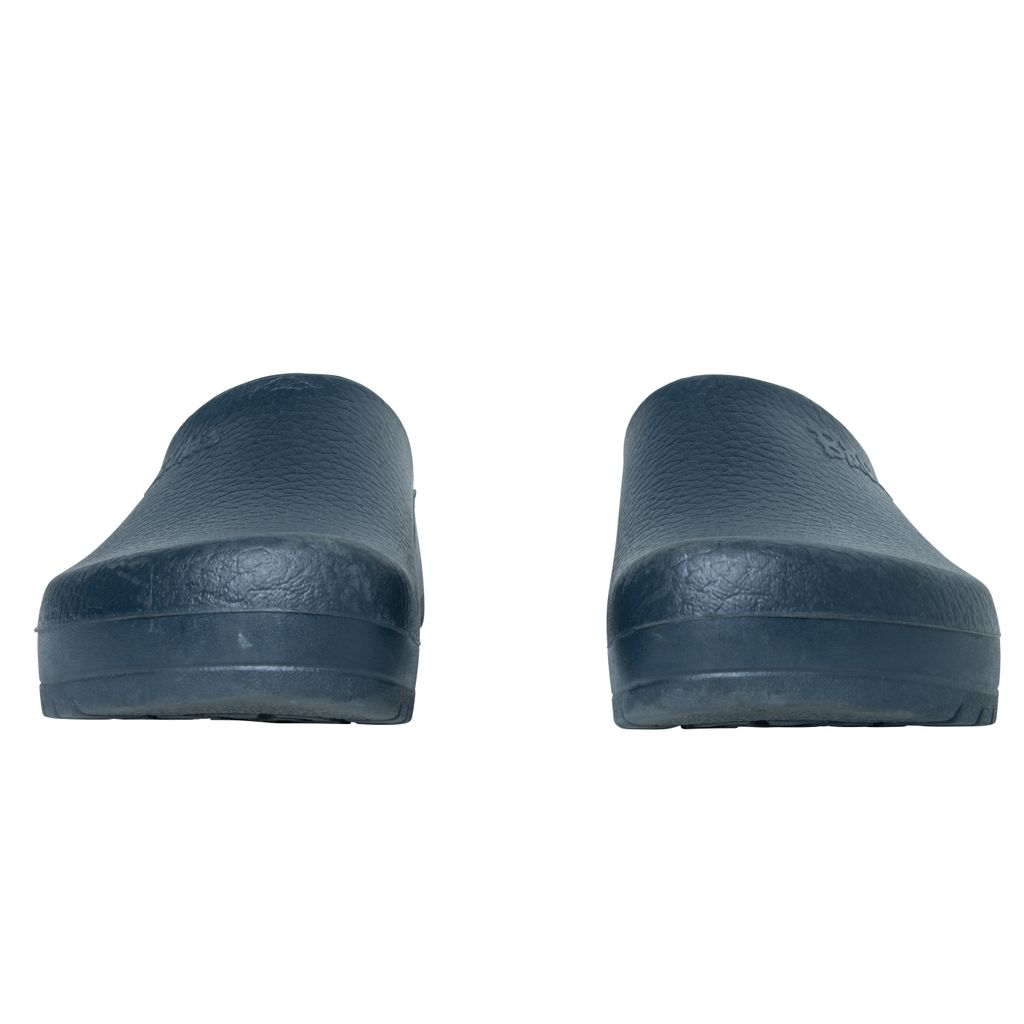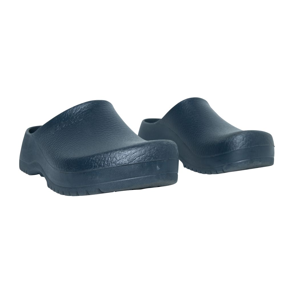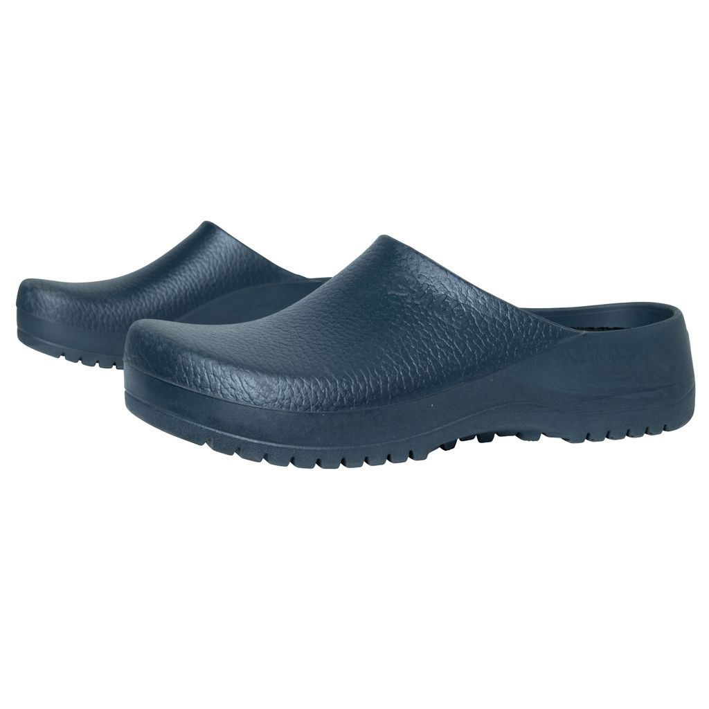 Birkenstock Super-Birki Clog in Navy Blue features removable, anatomically shaped cork-latex footbed, fabric footbed lining, and oil and grease resistant sole.
