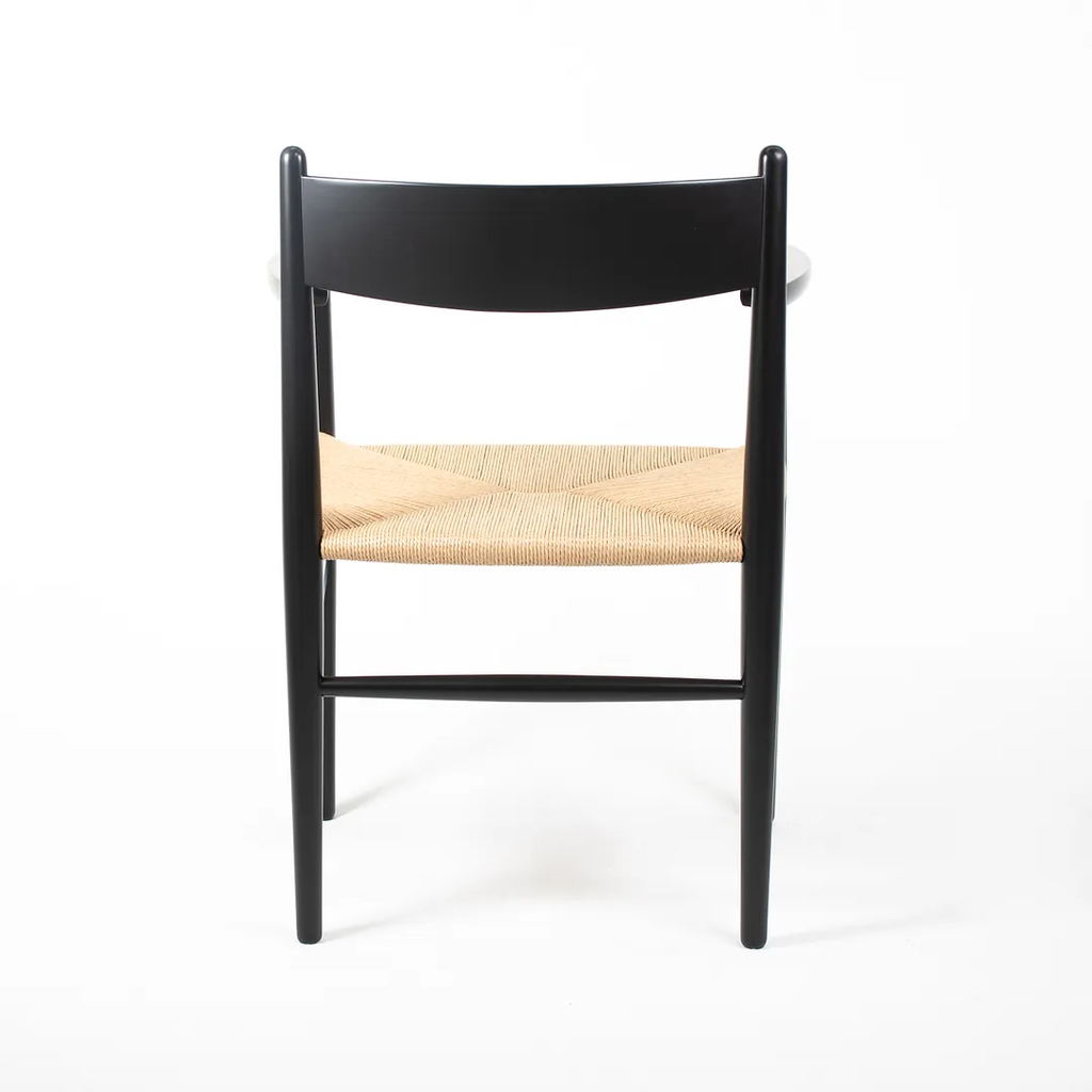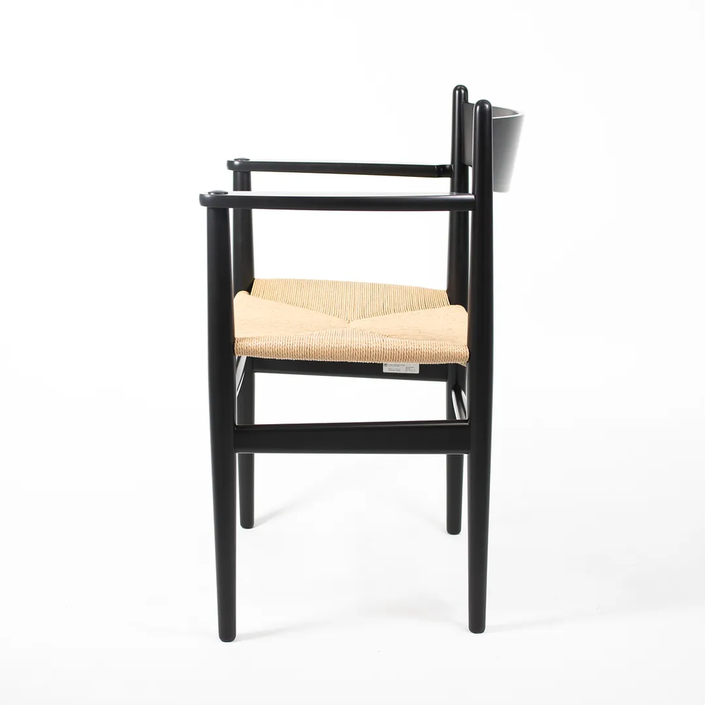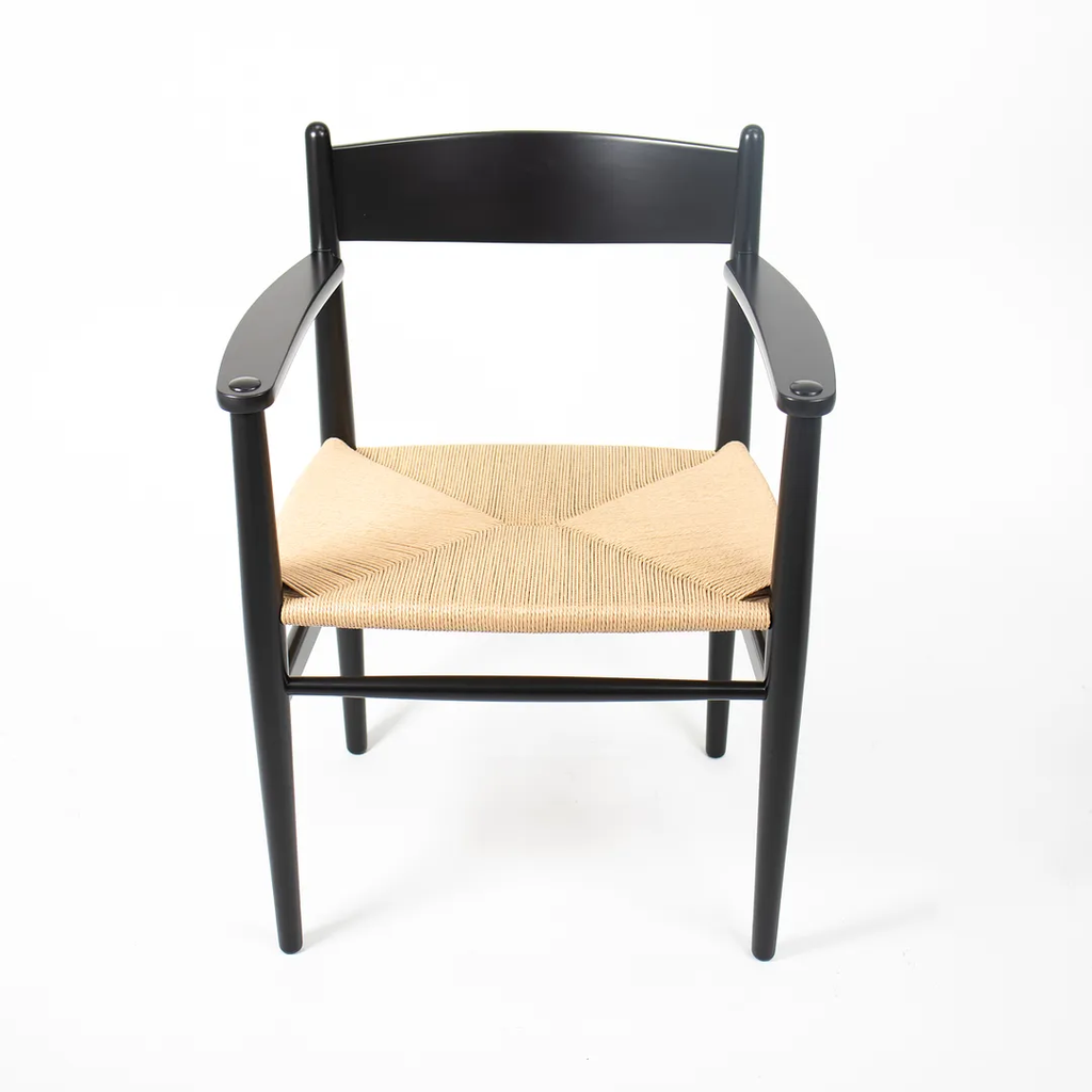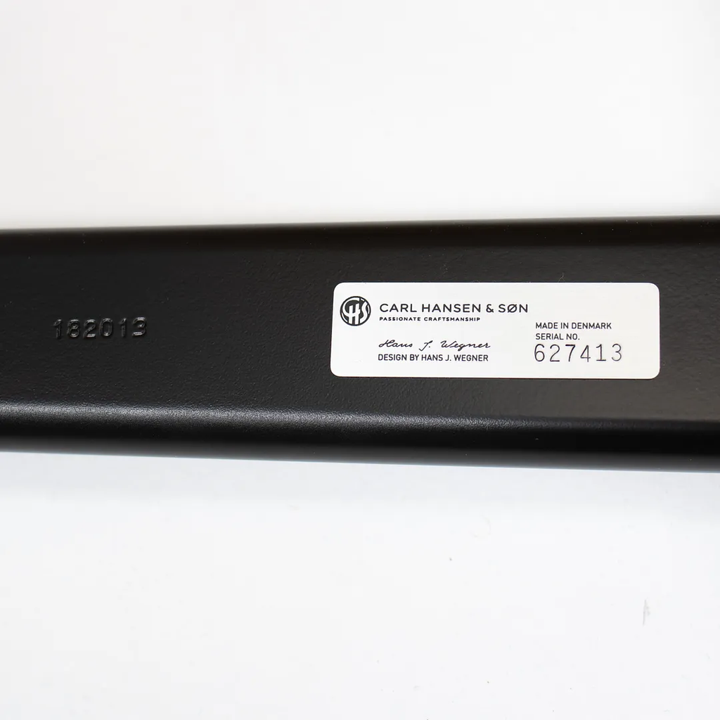 This is a single (two are available, though the price listed is for each chair) CH37 Dining Chair designed by Hans Wegner and produced by Carl Hansen & Son in Denmark. The chair is made with a solid beech frame, painted black with a natural paper cord seat. The chair dates to circa 2020 and is guaranteed as authentic. Condition is excellent with some light wear from use. See photos. The chairs came directly from Carl Hansen and appear to have never been used in a home or office setting.