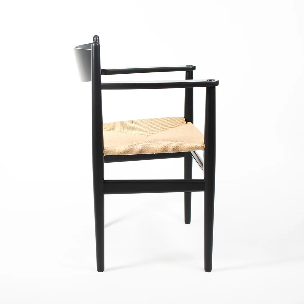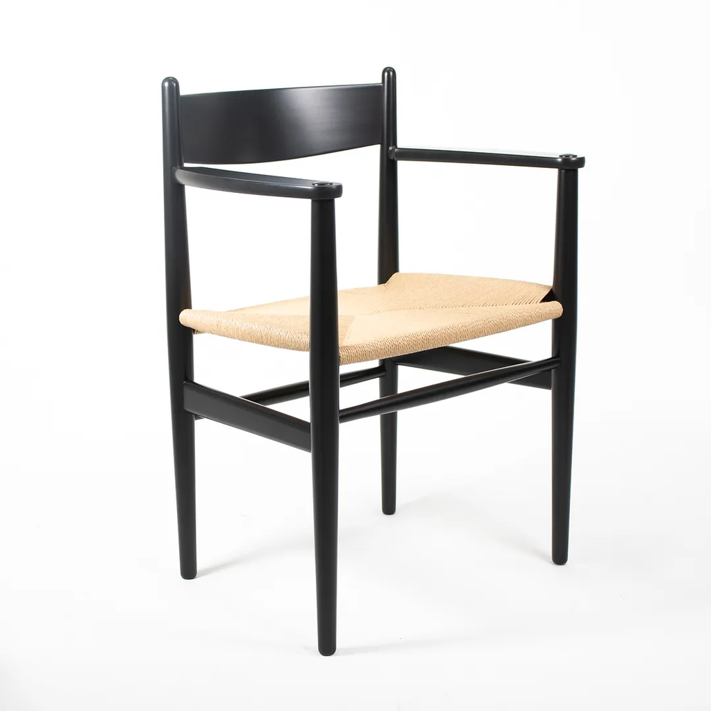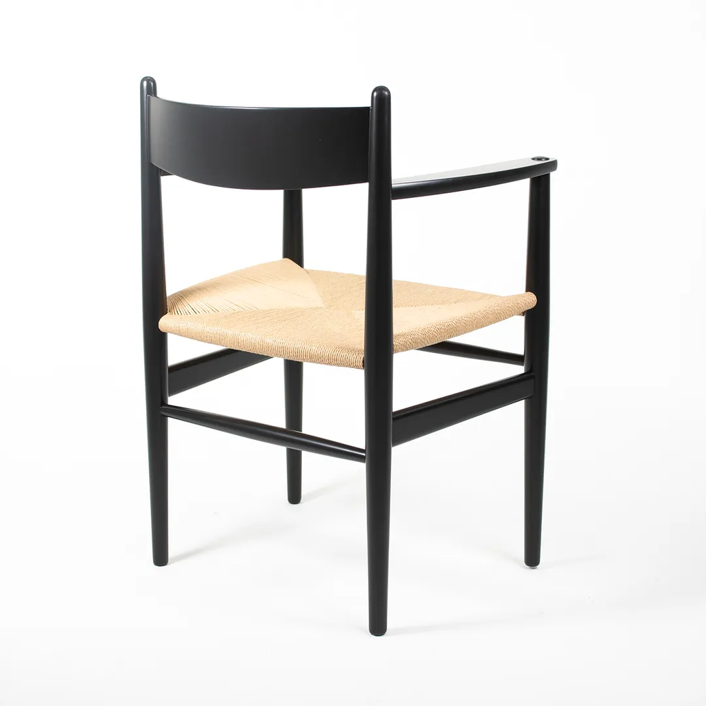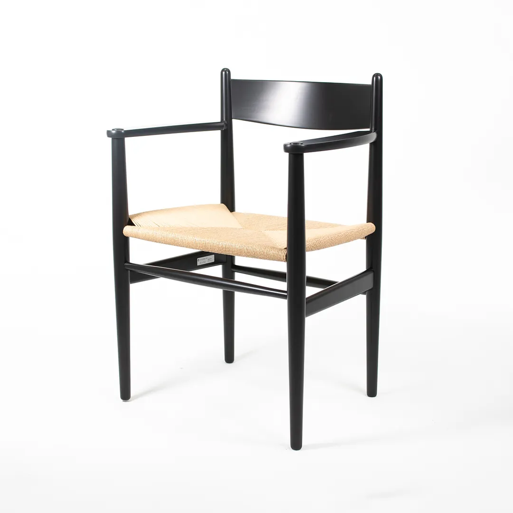 This is a single (two are available, though the price listed is for each chair) CH37 Dining Chair designed by Hans Wegner and produced by Carl Hansen & Son in Denmark. The chair is made with a solid beech frame, painted black with a natural paper cord seat. The chair dates to circa 2020 and is guaranteed as authentic. Condition is excellent with some light wear from use. See photos. The chairs came directly from Carl Hansen and appear to have never been used in a home or office setting.