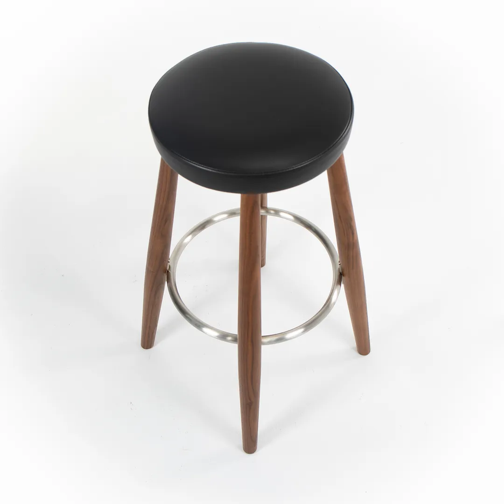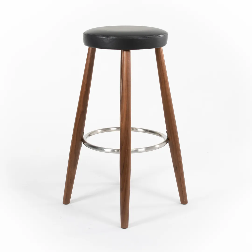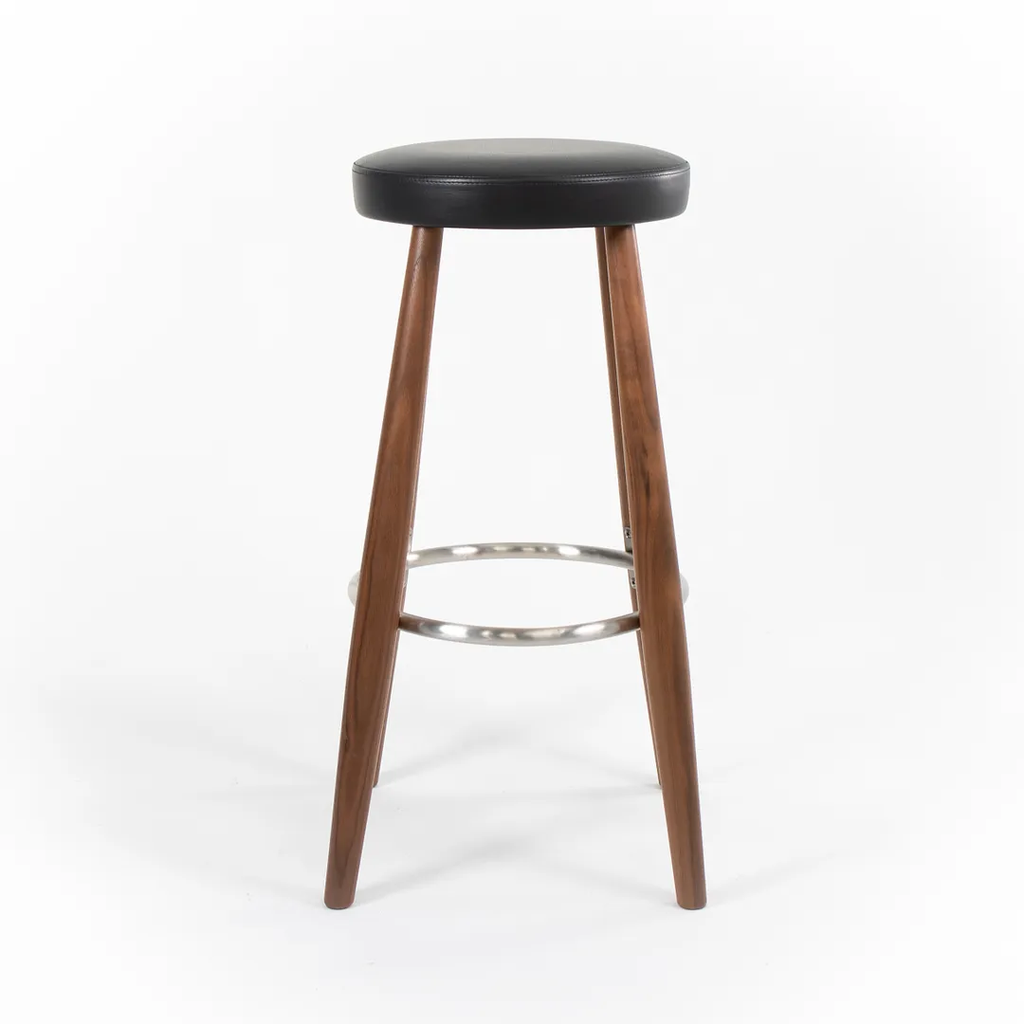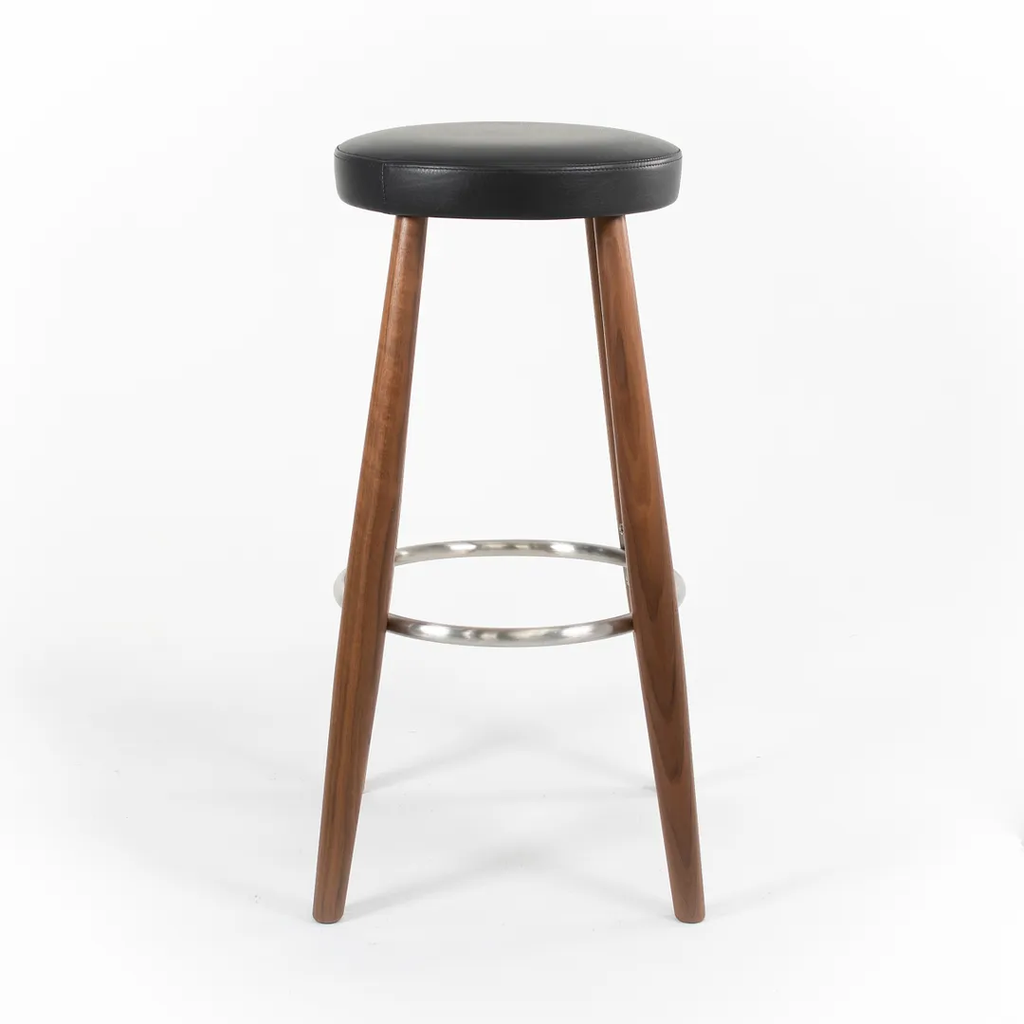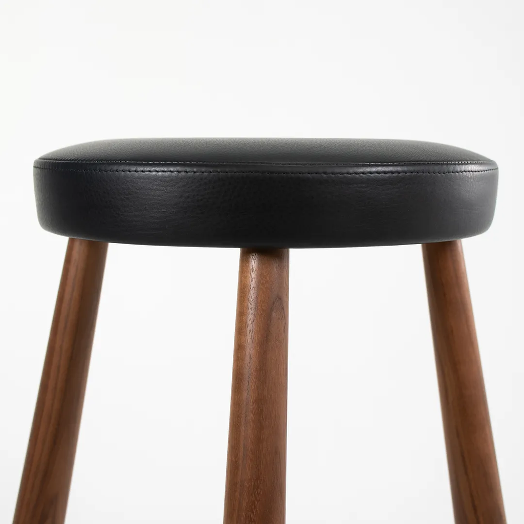Listed for sale is a CH56 Bar Stool designed by Hans Wegner, produced by Carl Hansen & Son in Denmark. The stool is made with a solid walnut frame and a black Thor leather seat. This stool dates to circa 2021 and is guaranteed as authentic. Condition is excellent with minimal wear. This came directly from Carl Hansen and was likely never used in a home or office setting. See photos.