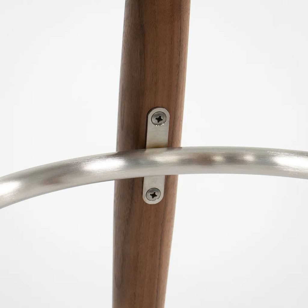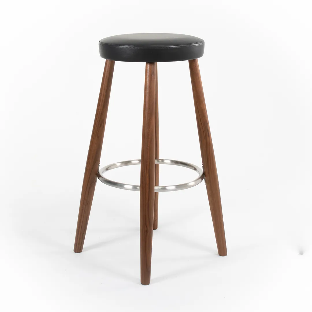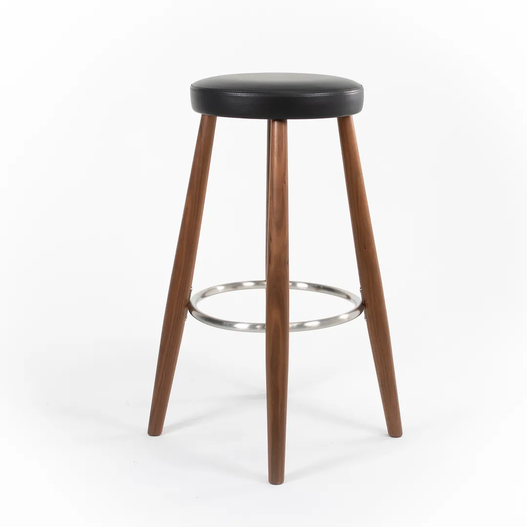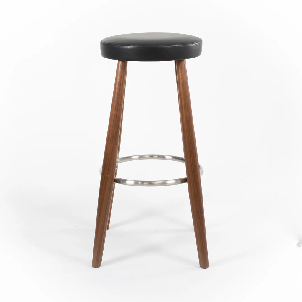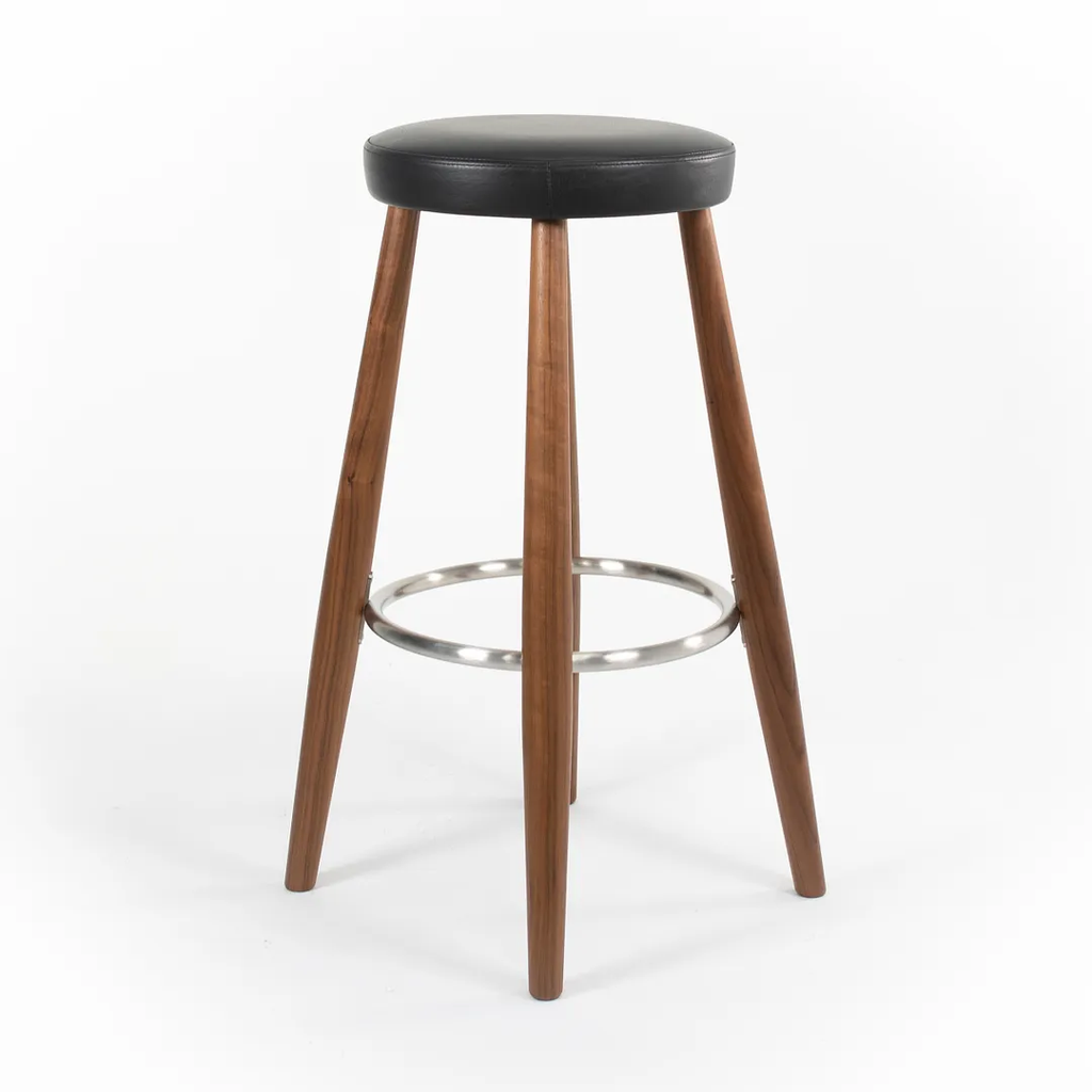 Listed for sale is a CH56 Bar Stool designed by Hans Wegner, produced by Carl Hansen & Son in Denmark. The stool is made with a solid walnut frame and a black Thor leather seat. This stool dates to circa 2021 and is guaranteed as authentic. Condition is excellent with minimal wear. This came directly from Carl Hansen and was likely never used in a home or office setting. See photos.