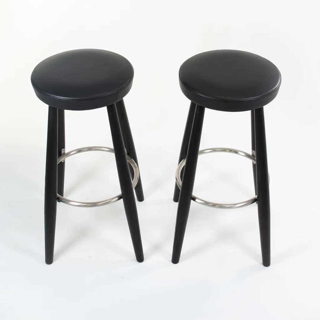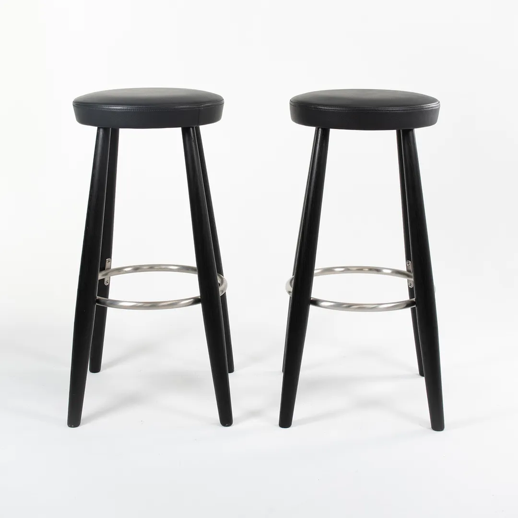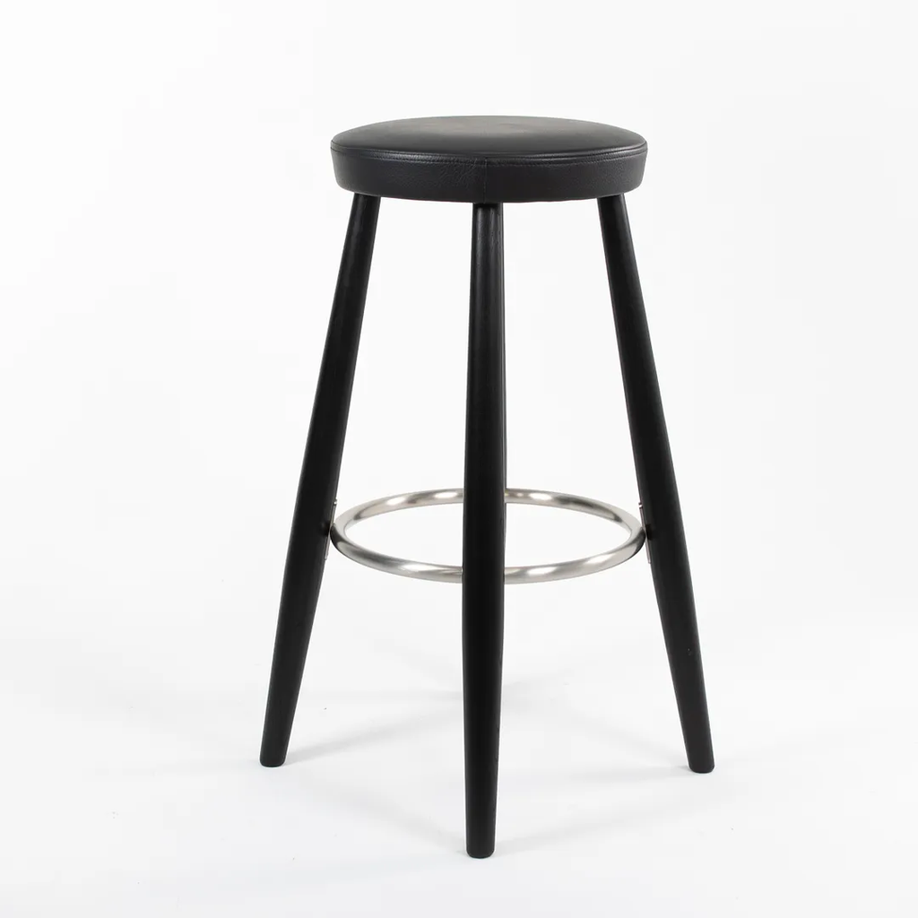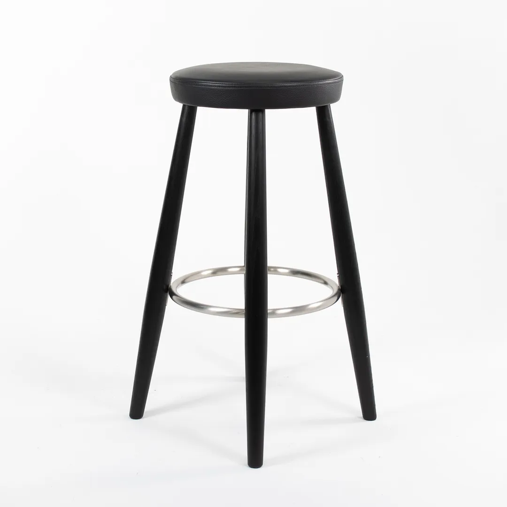 Listed for sale are two (sold separately) CH56 Bar Stools, designed by Hans Wegner and produced by Carl Hansen & Son in Denmark. The stools are made with an ebonized oak frame and black leather seat (seemingly Like 7150). These stools date to circa 2021 and are guaranteed as authentic. These came directly from Carl Hansen and were likely never used in a home or office setting. Condition is excellent with minimal wear. See photos.